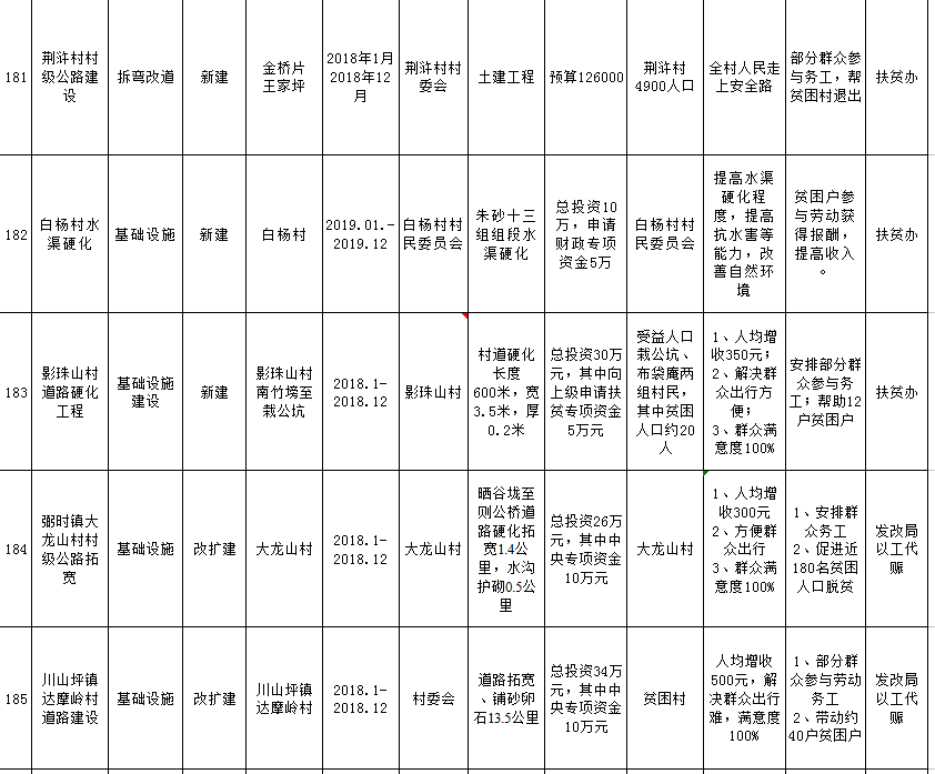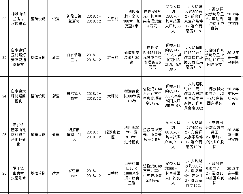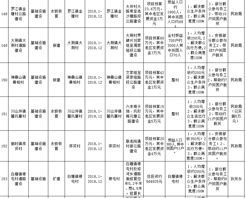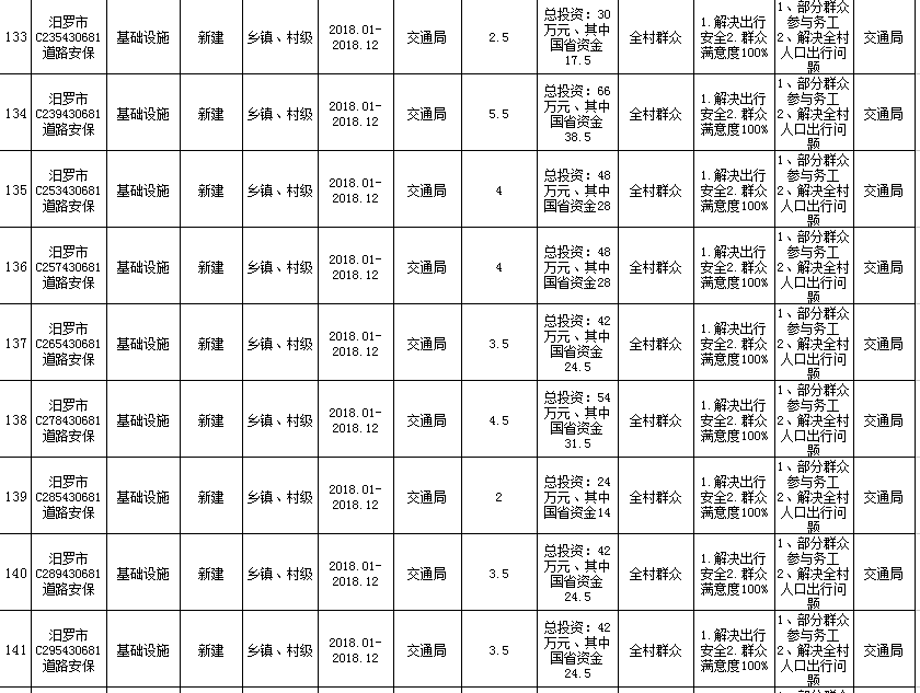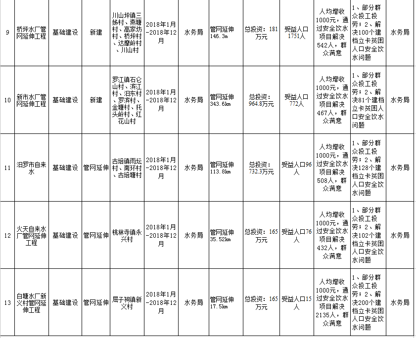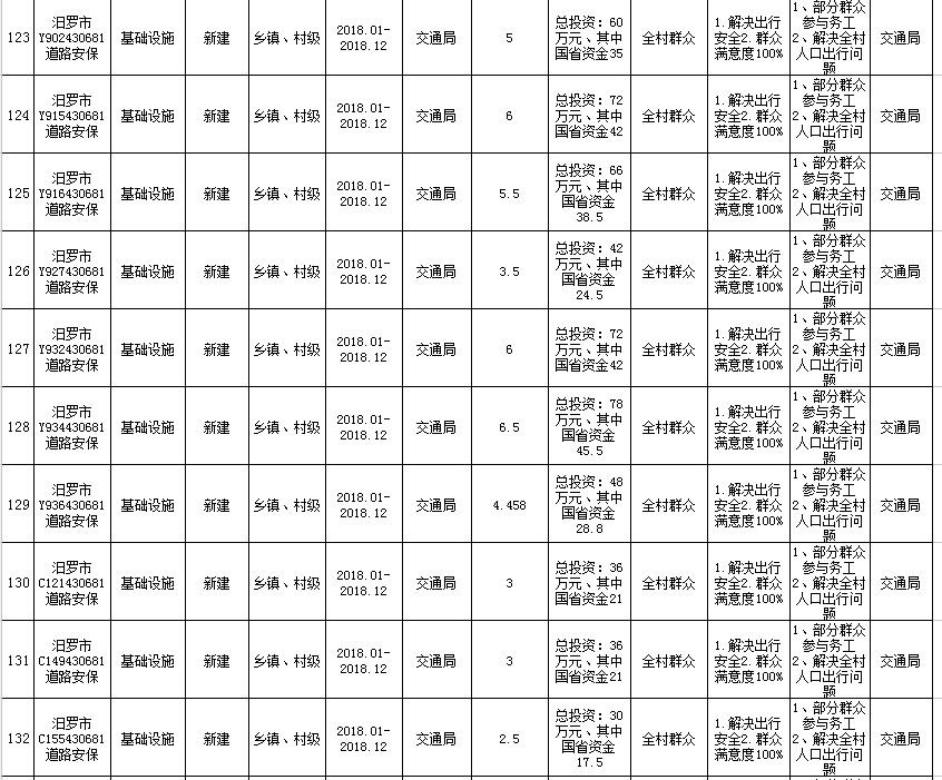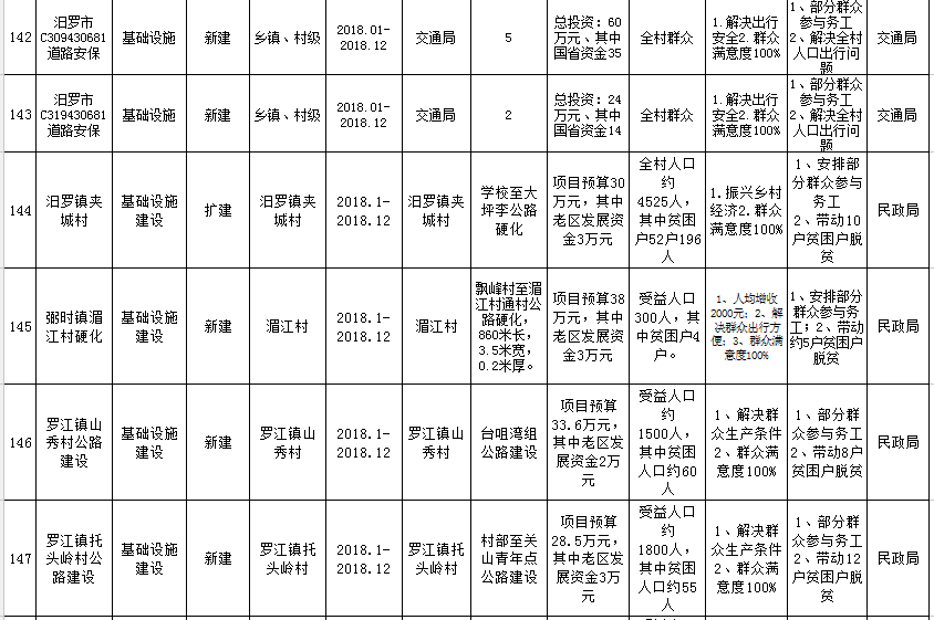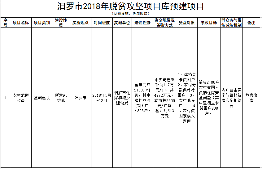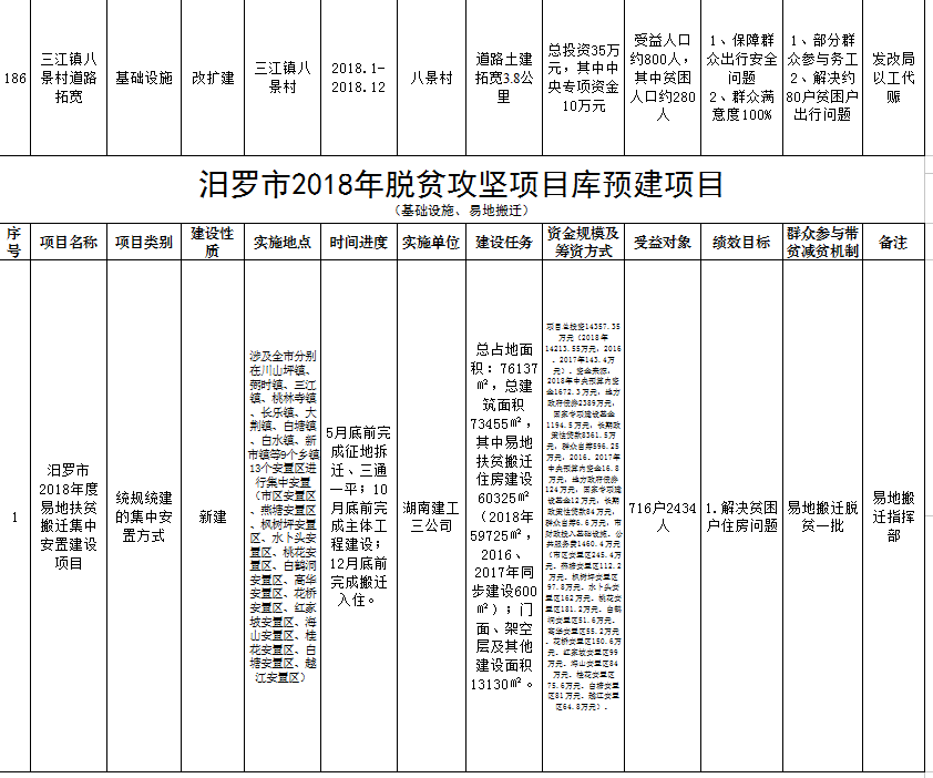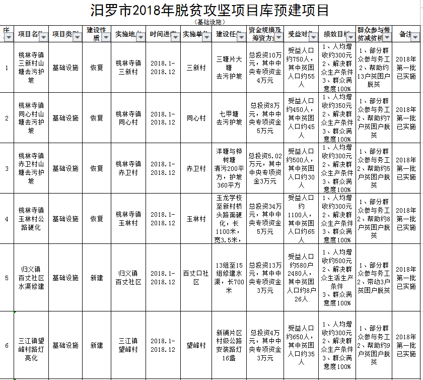 汨罗市2018年脱贫攻坚项目库预建项目公示(基础设施建设)