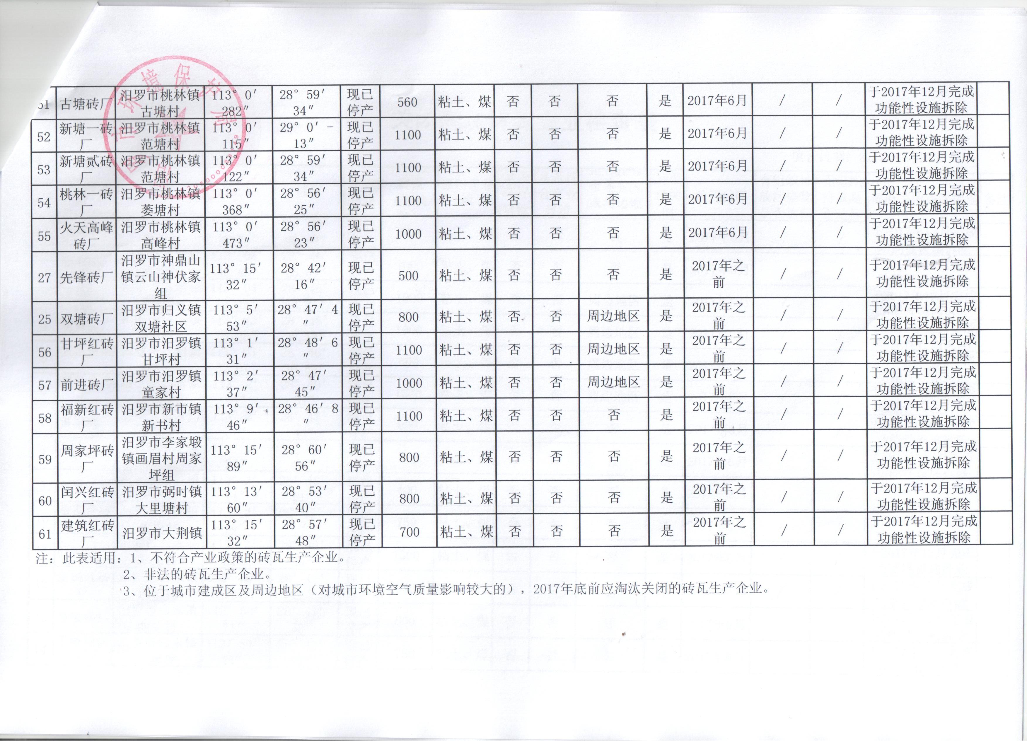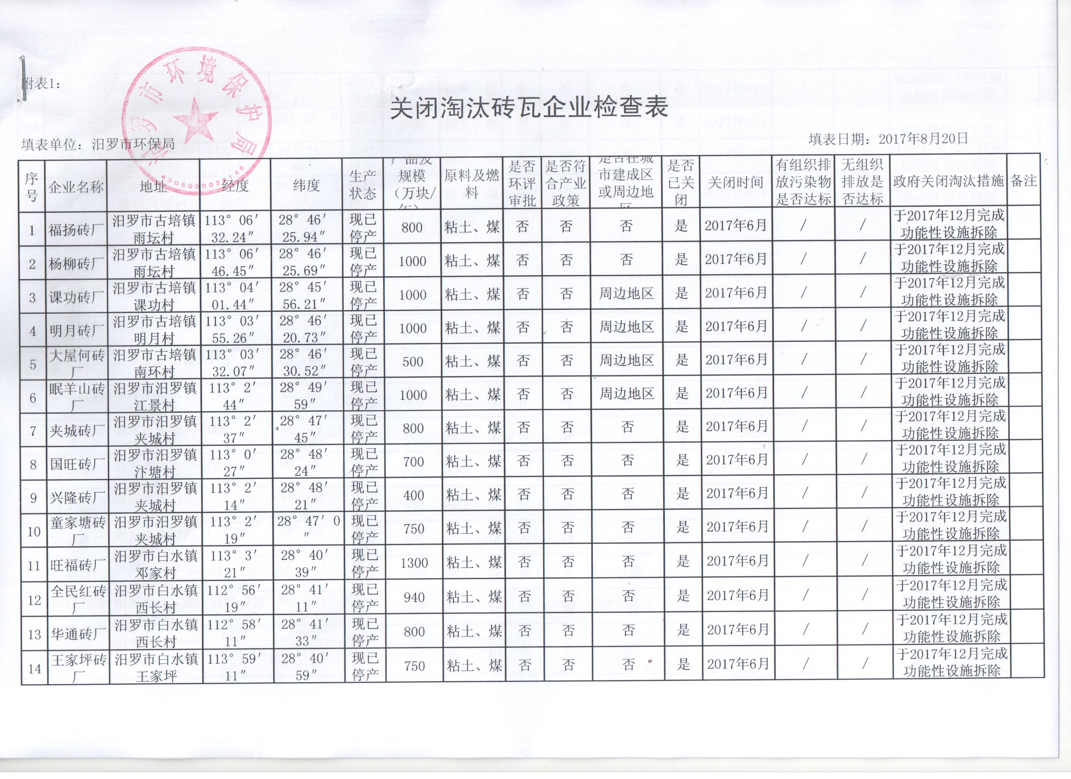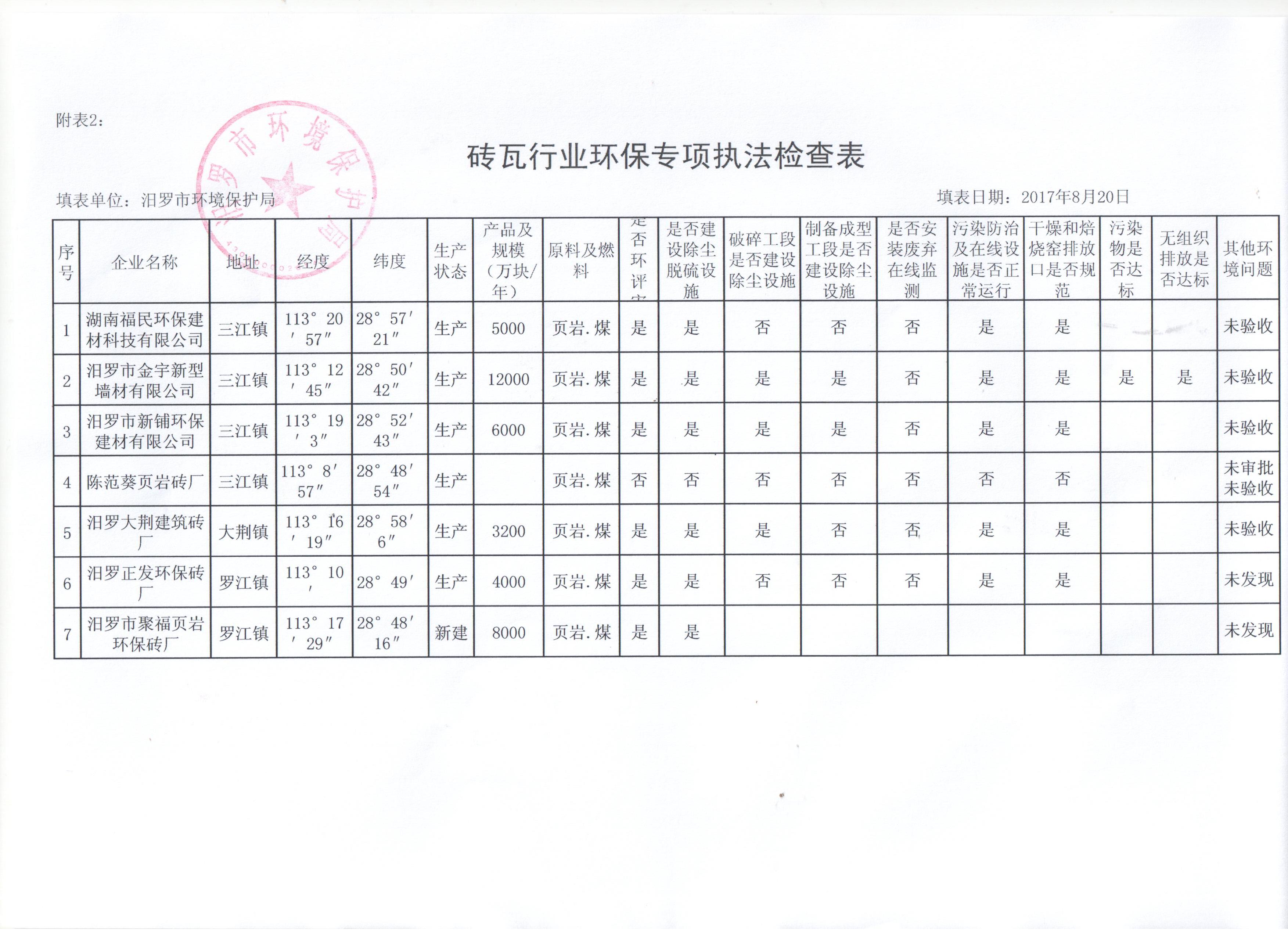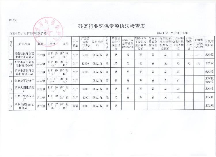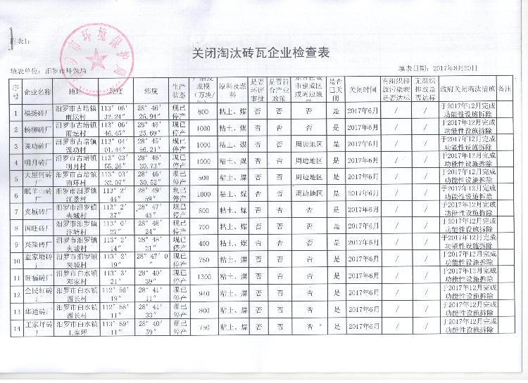 汨罗市砖瓦行业环保专项执法检查表及关闭淘汰砖瓦企业检查表