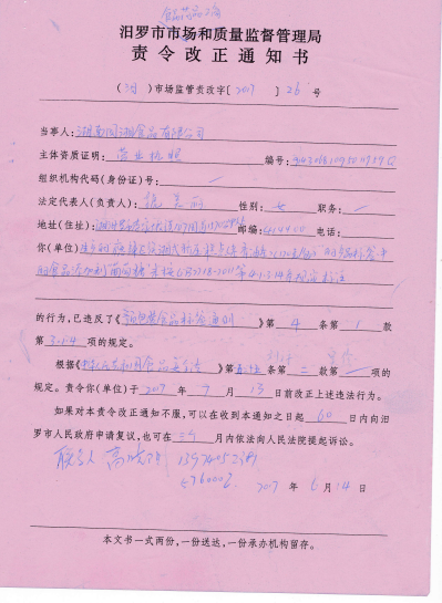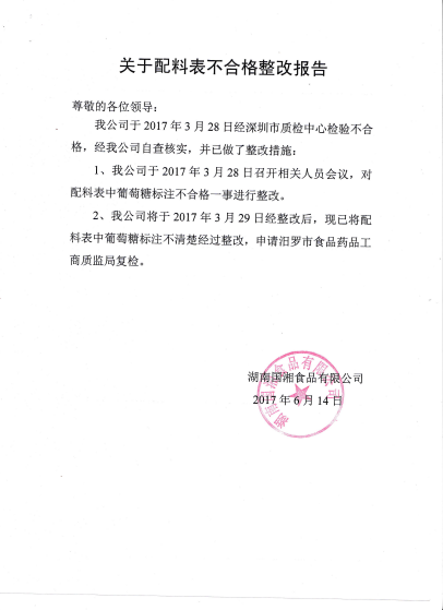 对湖南国湘食品有限公司产品标签的整改公示