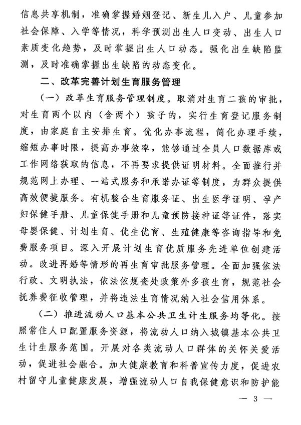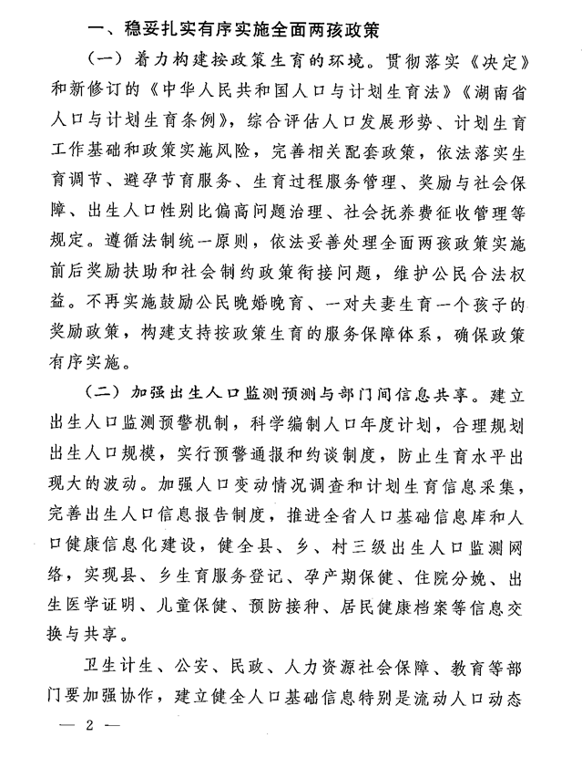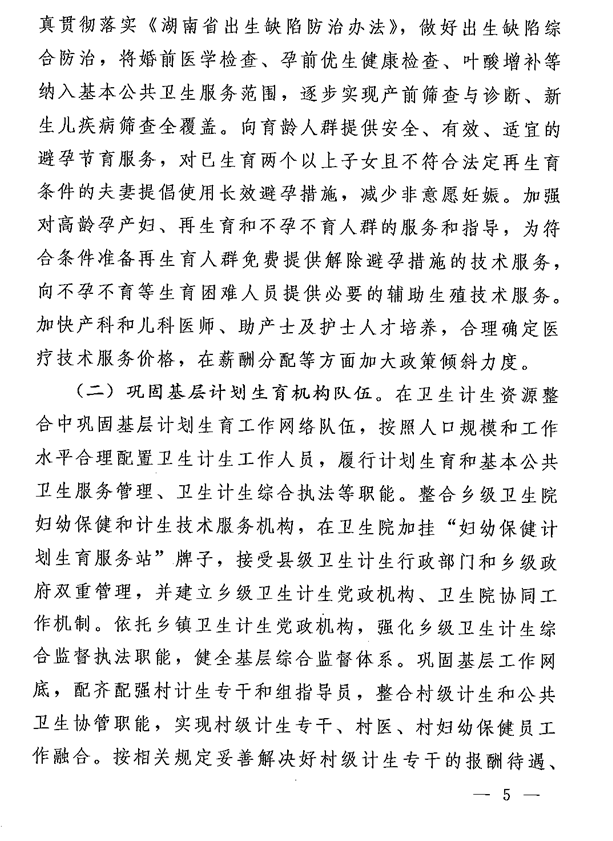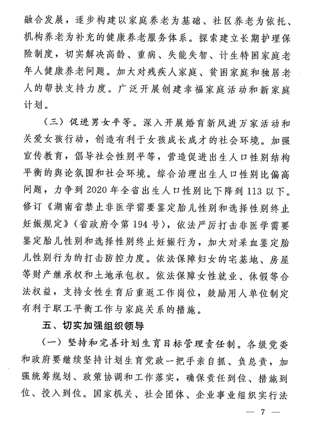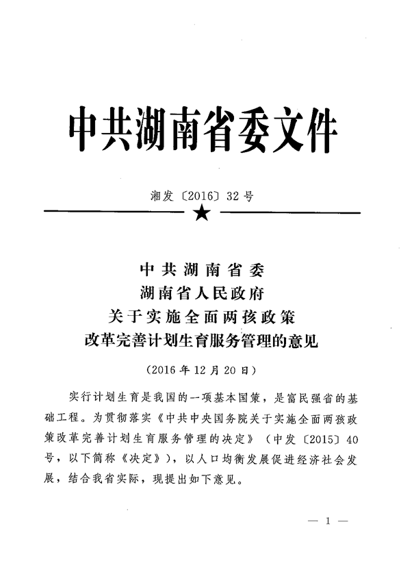 中共湖南省委湖南省人民政府关于实施全面两孩政策改革完善计划生育服务管理的意见