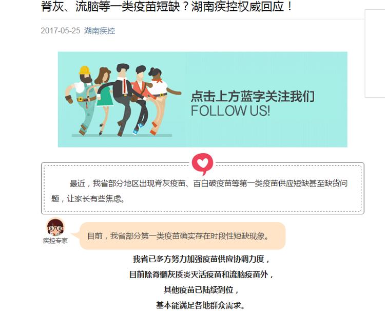 汨罗脊灰、流脑一类疫苗短缺,请看湖南疾控权威回应!