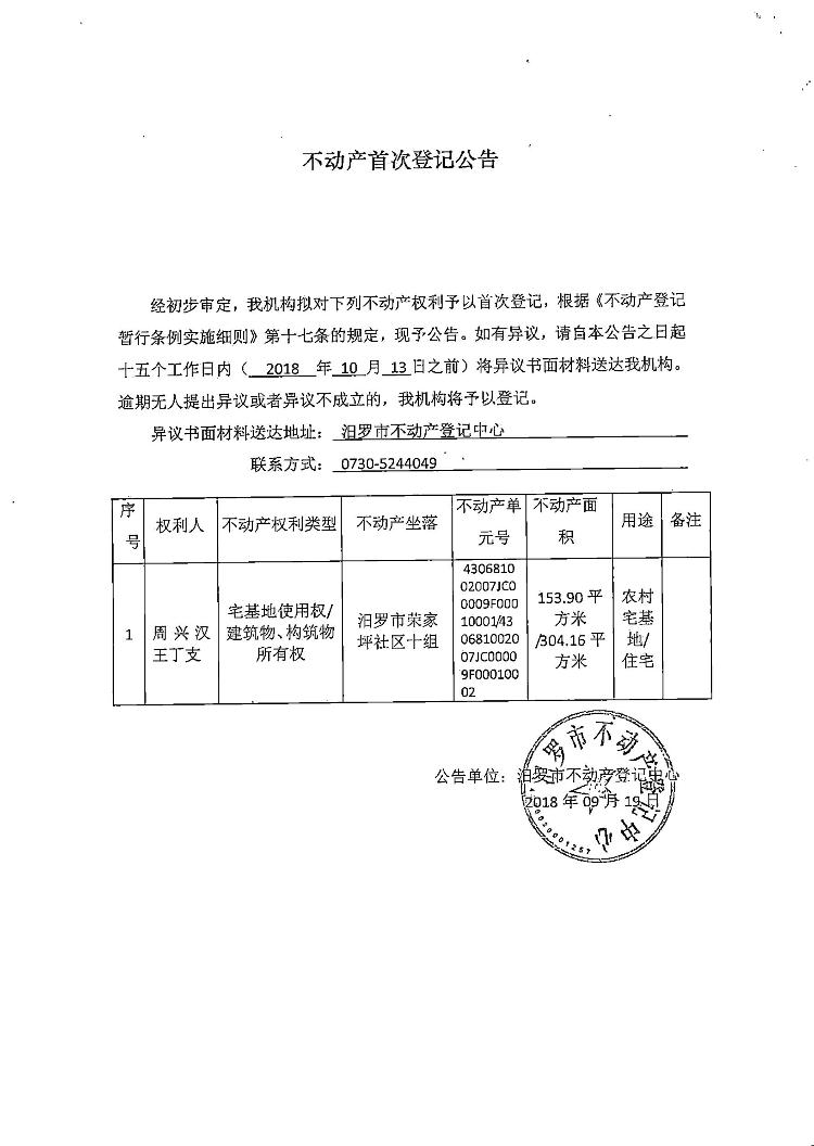 不动产首次登记公告(周兴汉)