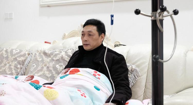 因连日的高强度工作,王勇军在家中打起了吊针