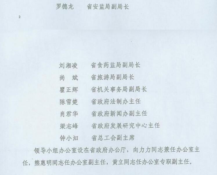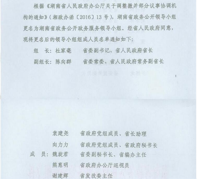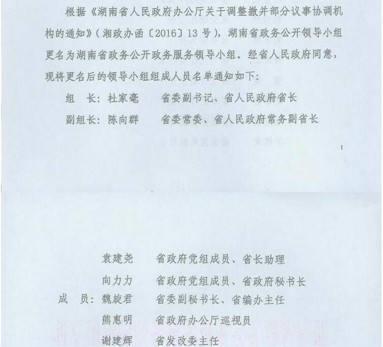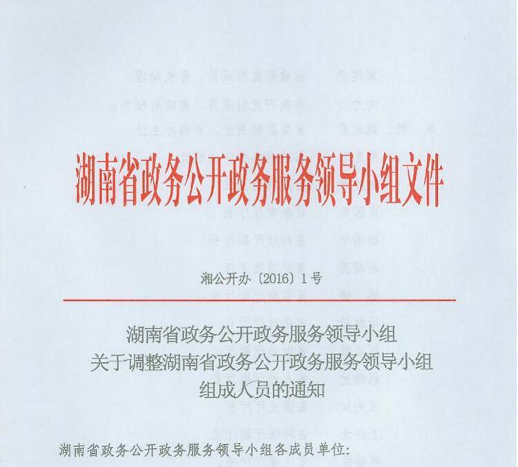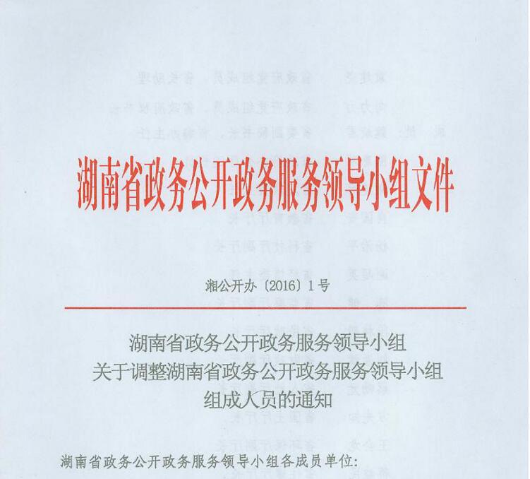 湖南省政务公开政务服务领导小组关于调整湖南省政务公开政务服务领导小组组成人员的通知