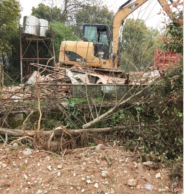 3月28日下午,S308古培段,一辆挖掘机开到一家名为桃李园的餐厅前。铁铲挥舞,这个占地面积约500平方米、有着二十余年历史的老餐厅轰然倒塌。