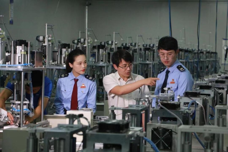 汨罗市税务局青年突击队到三兴精密车间调研企业生产情况