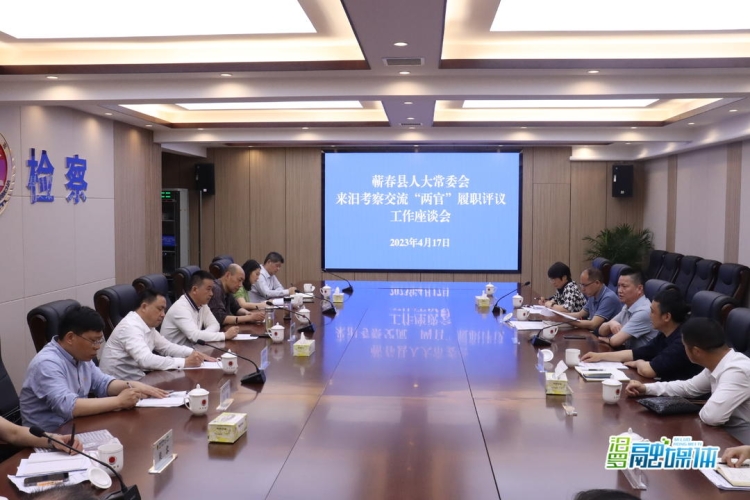 汨罗融媒体讯(记者 张慧)4月17日,湖北省黄冈市蕲春县人大常委会党组成员、副主任徐焱明率队来汨罗考察交流“两官”履职评议工作。汨罗市人大常委会副主任李才红,市人大监察和司法委、法制委,市人民法院、检察院相关负责人陪同。