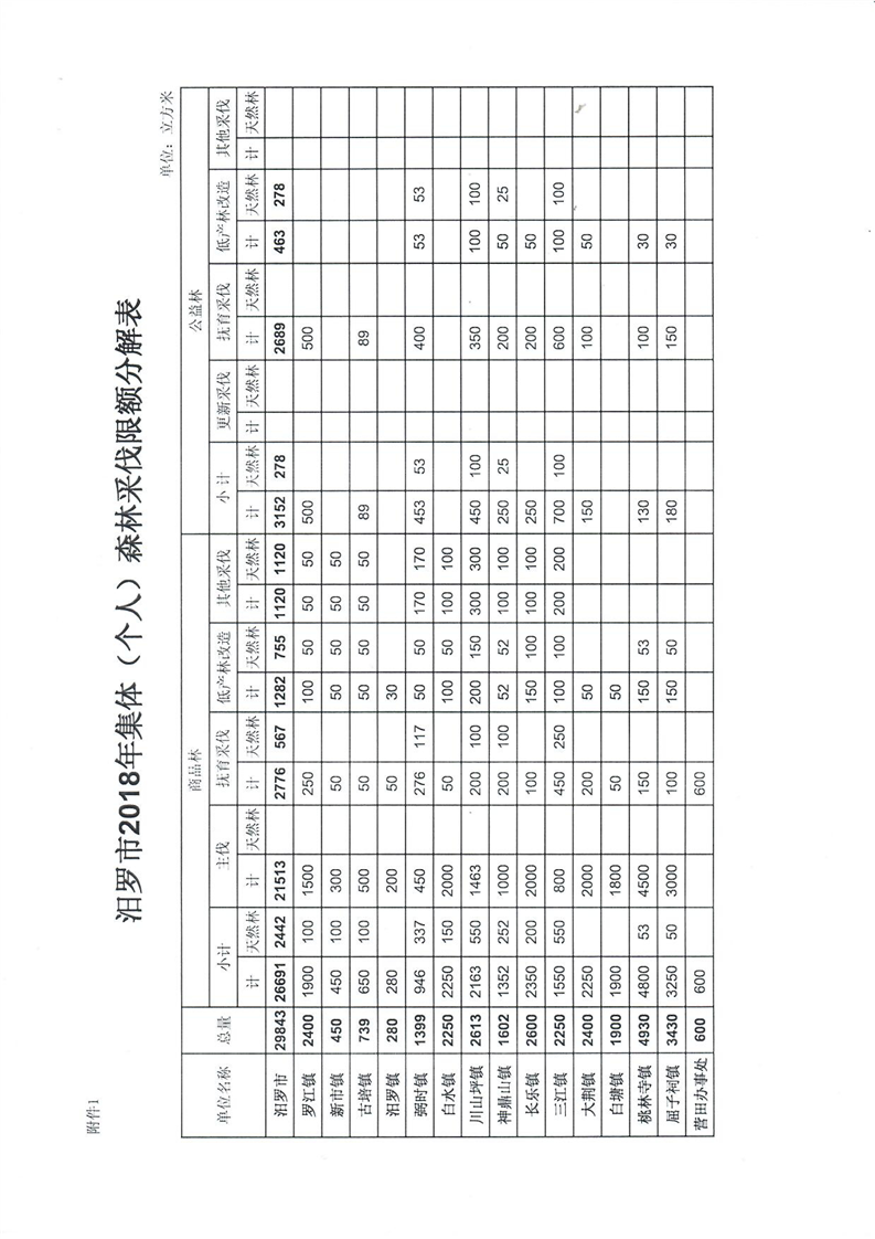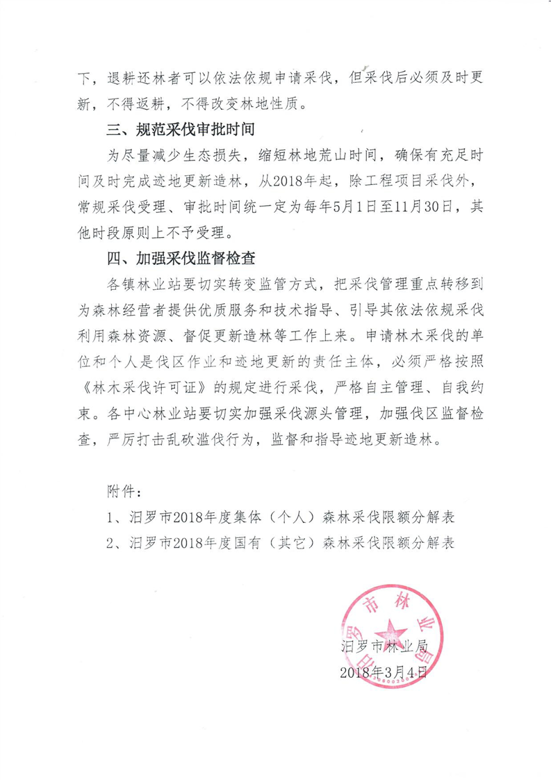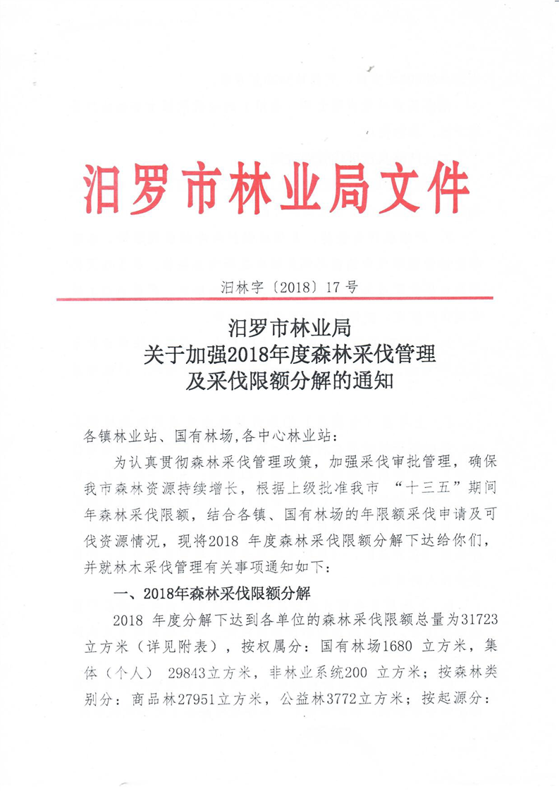 汨罗市林业局关于加强2018年度森林采伐管理及采伐限额分解的通知