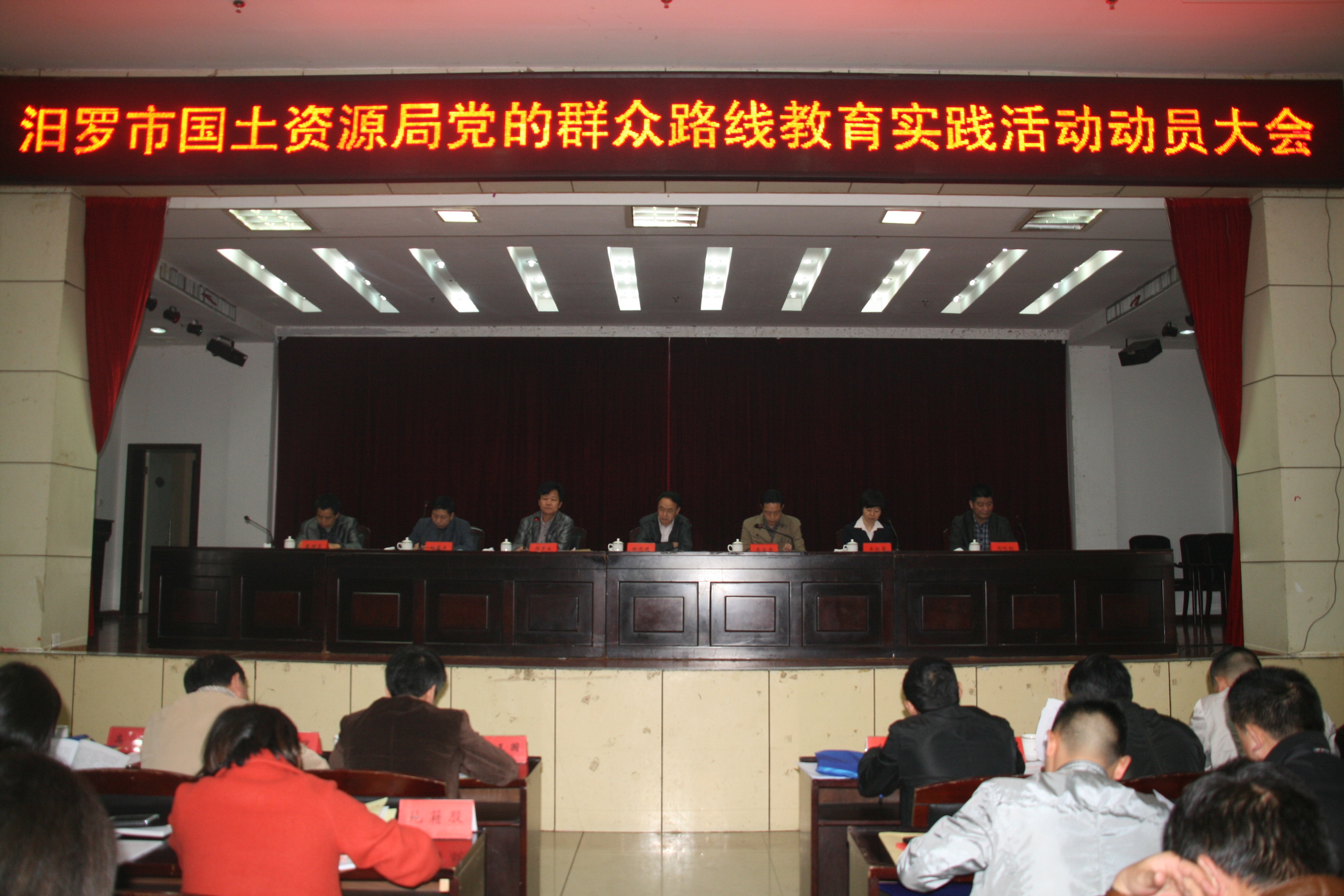 4月3日,汨罗市国土资源局召开党的群众路线教育实践活动动员大会。汨罗市政府副主任督学徐迎建率第9督导组全体成员亲临指导工作。