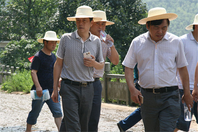 7月9日,岳阳市国土资源局总经济师陈湘栋带领地环科负责人、地质专家等来到汨罗市川山坪镇督导地灾防治工作。市国土资源局、川山坪镇政府负责人陪同。