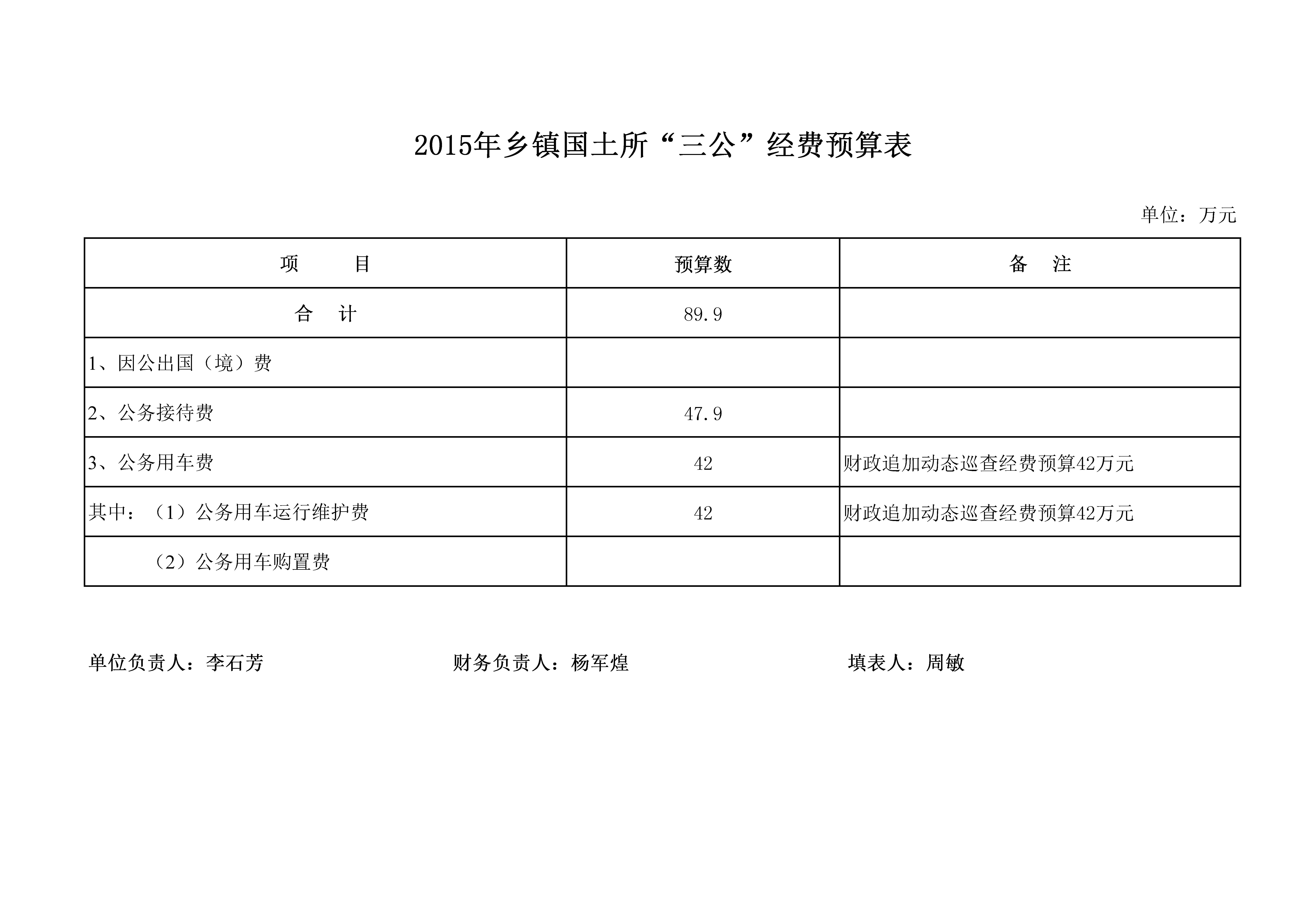 2015年汨罗市国土资源局乡镇国土所“三公”经费预算表