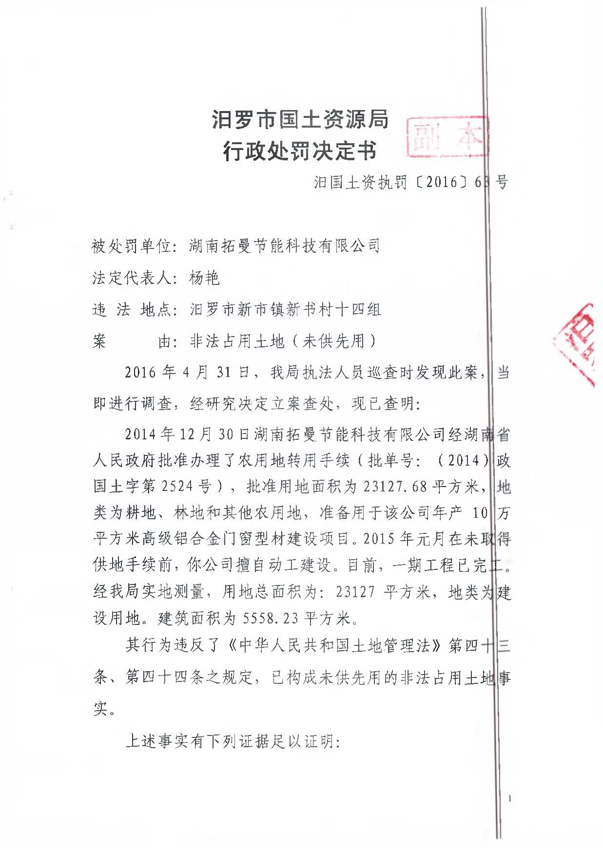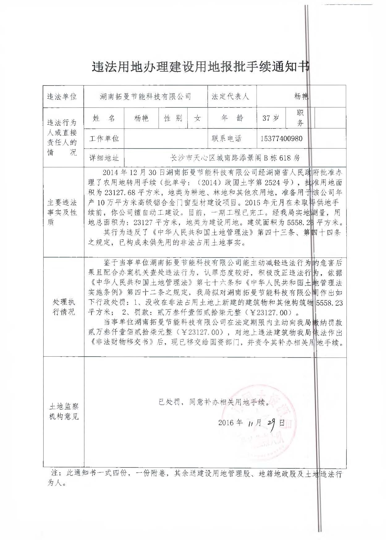 拓曼节能科技有限公司非法占用土地(未供先用)案