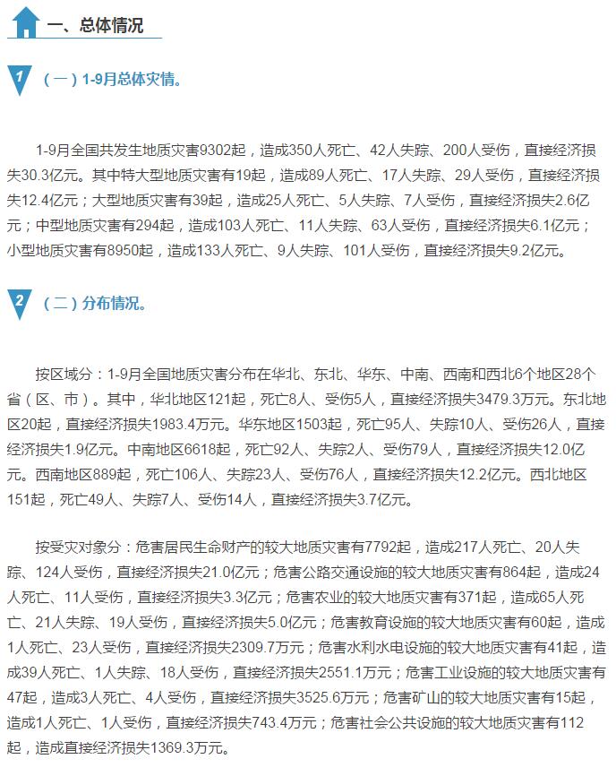 2016年1-9月全国地质灾害灾情及第四季度地质灾害趋势预测