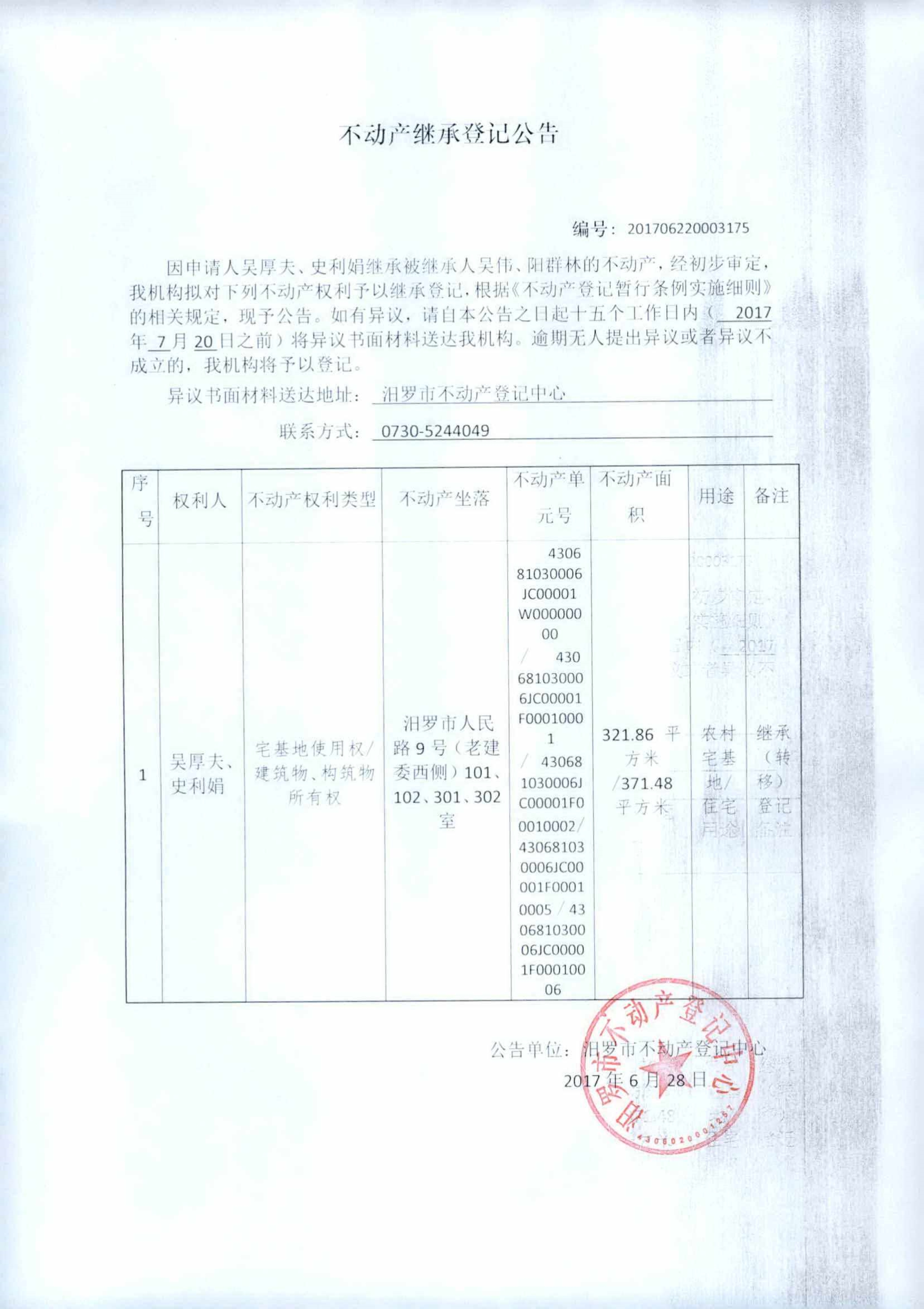 作者:汨罗市不动产登记中心 来源:汨罗市不动产登记中心 更新时间:2017-06-28