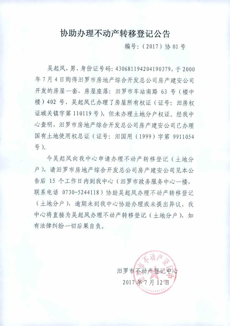 作者:汨罗市不动产登记中心 来源:汨罗市不动产登记中心 更新时间:2017-07-12