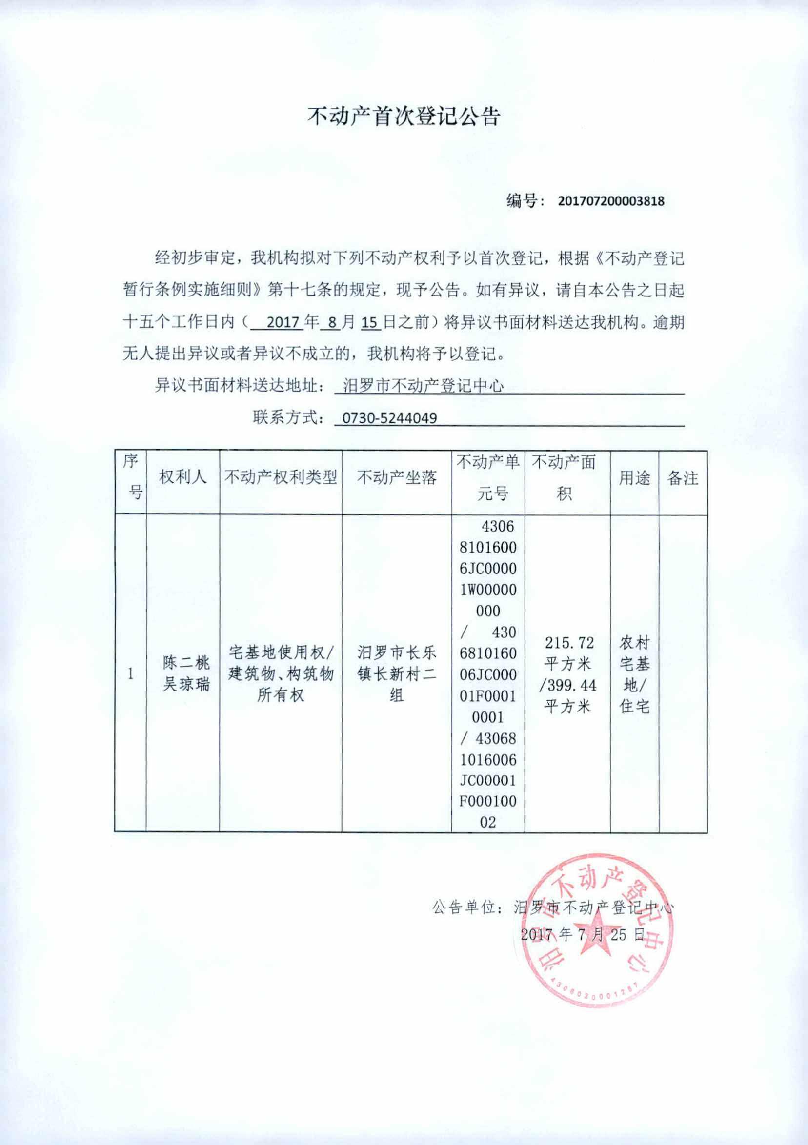 作者:汨罗市不动产登记中心 来源:汨罗市不动产登记中心 更新时间:2017-07-25