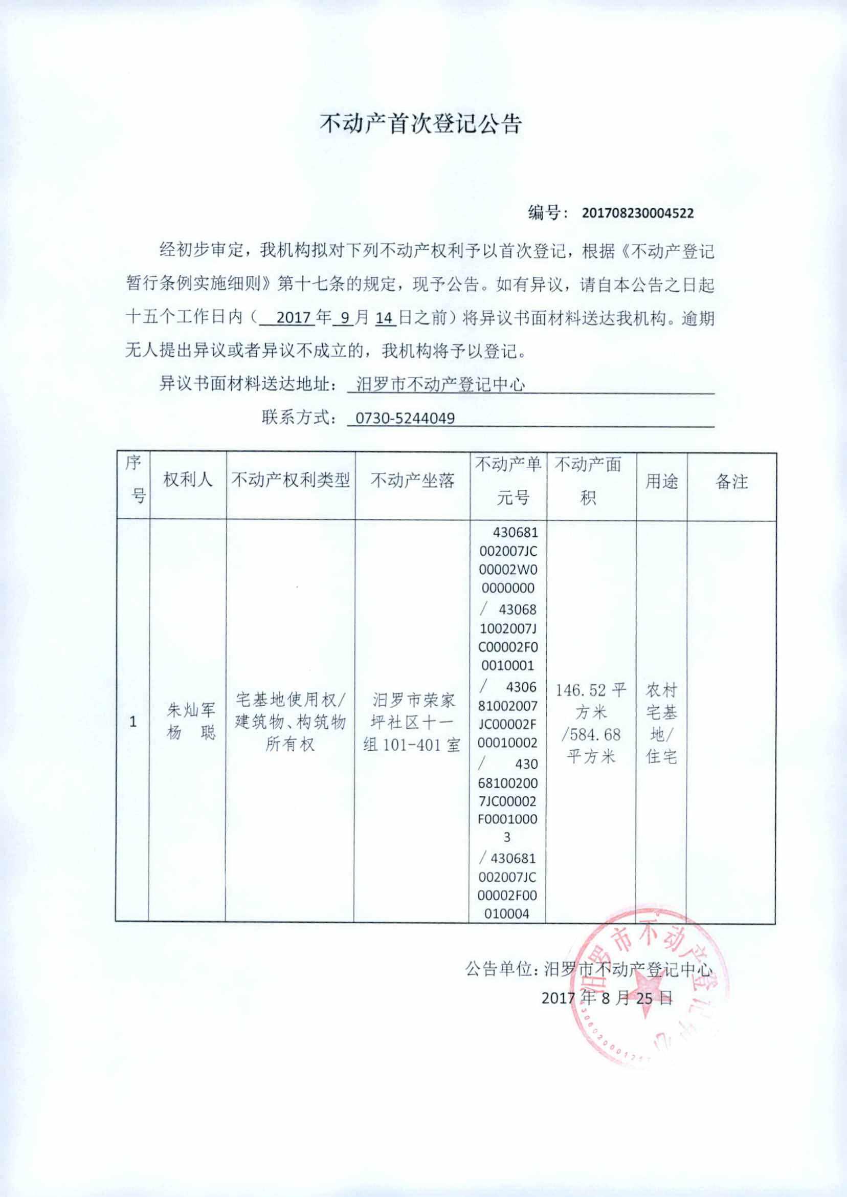 不动产首次登记公告(朱灿军)