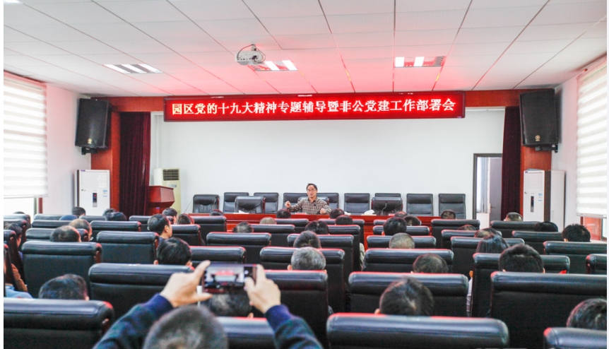 11月7日,循环经济产业园企业党委组织44个非公企业支部书记、党建指导员专题学习十九大精神,部署非公党建工作。