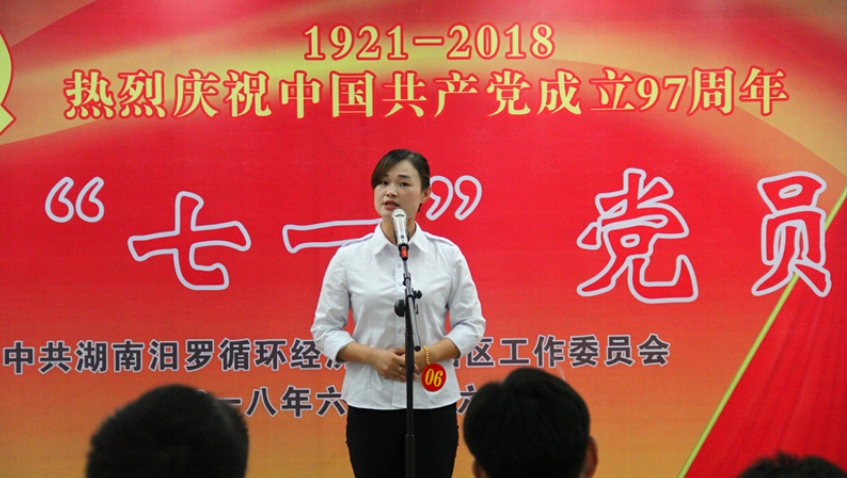 6月26日,在中国共产党成立97周年之际,汨罗循环经济产业园开展主题演讲、重温入党誓词、扶贫帮困募捐等系列活动。副市长、园区党工委书记宋辉为党员干部讲党课。