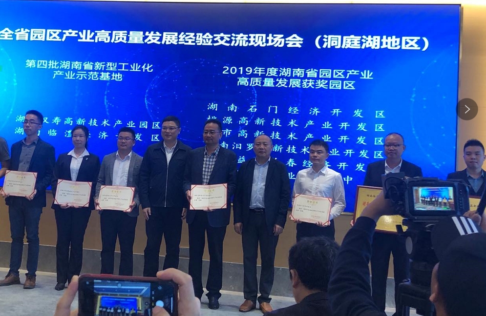 此次会议表彰了湖南汨罗高新区等5家获得2019年度湖南省园区产业高质量发展获奖园区。湖南汨罗高新区在现场会作经验交流发言。