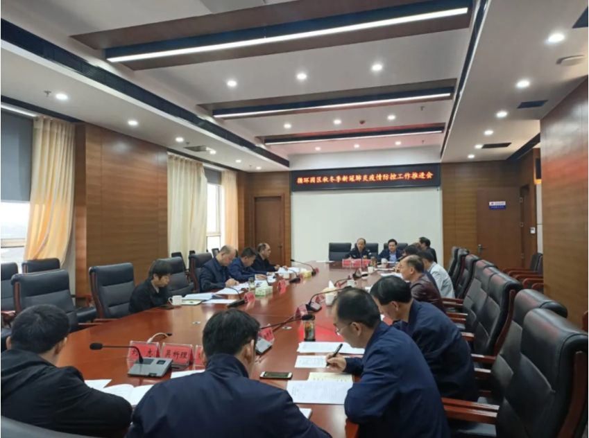 10月16日,园区党工委书记、管委会主任刘勇主持召开循环园区秋冬季新冠肺炎疫情防控工作推进会,管委会副主任冯勇刚、纪工委书记杨惜春、管委会副主任柳才平以及园区各部门负责同志参加。