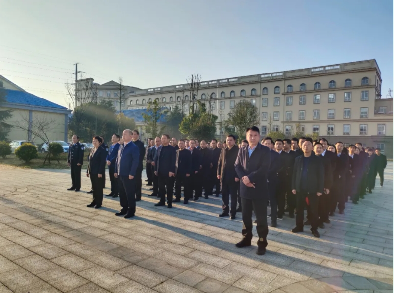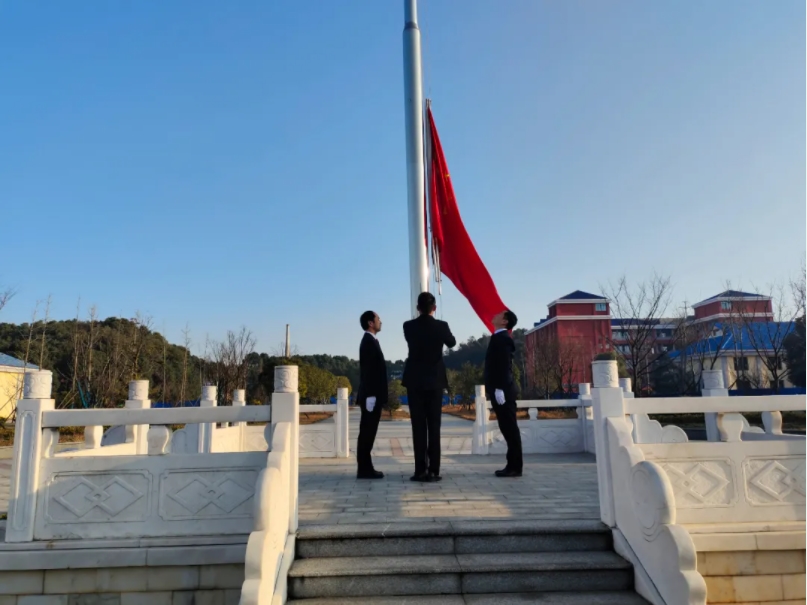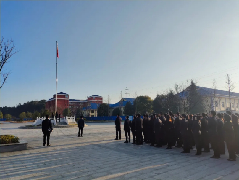辰时,升旗仪式开始,园区干部职工身着正装,充满精神朝气,整齐列队站立。在国歌声中,鲜艳的五星红旗升起,园区全体工作人员满怀新年希望,重新投入到忙碌的工作中,向着理想目标迈进。