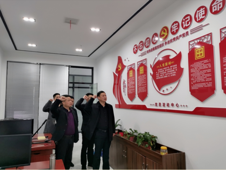 2月18日,农历大年初七,春节过后上班第一天。招商联络部党支部全体党员举行了重温誓词活动,面对党旗举起右拳,庄严宣誓,认真回顾入党宣誓时的庄严承诺,回顾自己的成长历程和入党以来的追求与表现,牢记入党誓言,增强党员意识,强化党性观念。