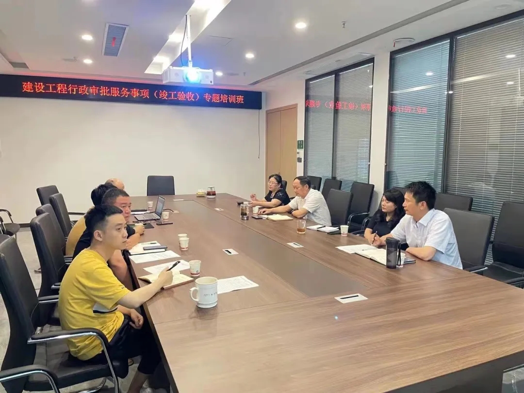 培训课上,彭旭宇同志以某公司的在建项目为例,详细介绍了项目报建过程中立项用地规划、工程建设、施工许可、竣工验收四个阶段系统操作的关键点,随后彭旭宇同志和姜维同志详细介绍了项目竣工验收相关流程。