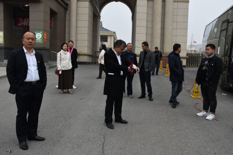 (众志成城,在企业党委组织下,各支部书记、党建专干准时集合,准备出发)