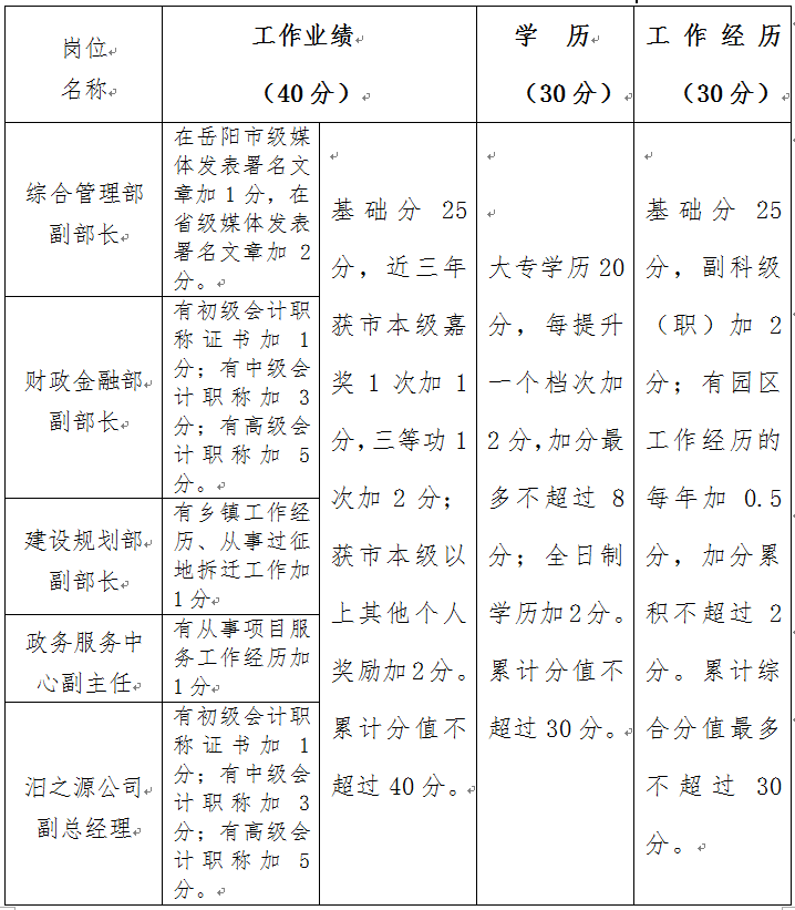 3、考核主要对选聘对象的学历、工作业绩、工作经历进行考核。考核分值为100分,分值设置如下: