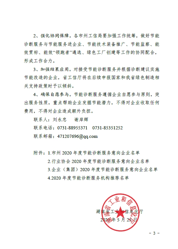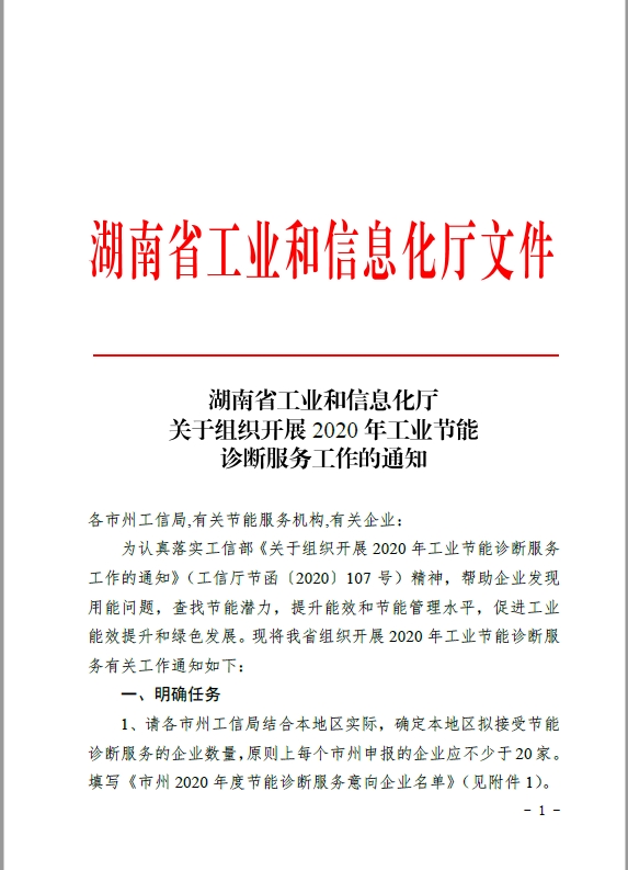 湖南省工业和信息化厅关于组织开展2020年工业节能诊断服务工作的通知