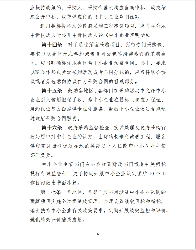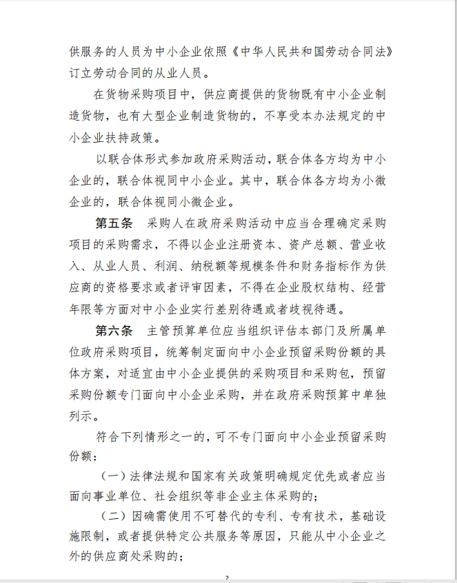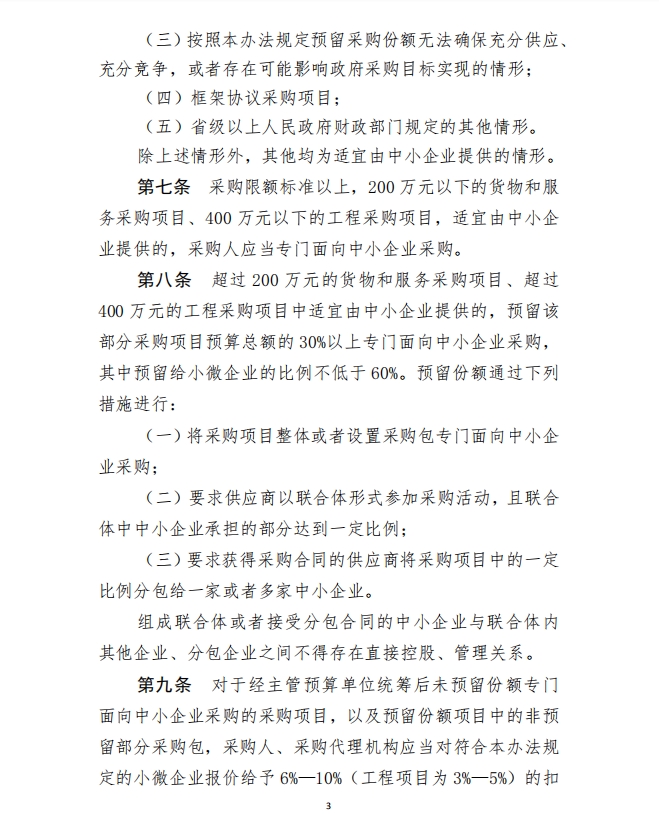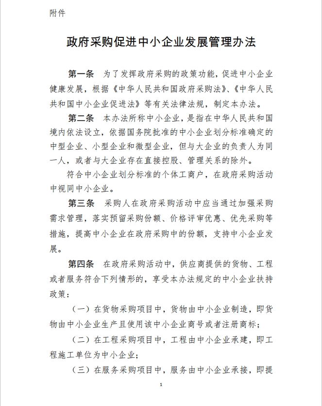 为贯彻落实《关于促进中小企业健康发展的指导意见》,发挥政府采购政策功能,促进中小企业发展,根据《中华人民共和国政府采购法》、《中华人民共和国中小企业促进法》等法律法规,财政部、工业和信息化部制定了《政府采购促进中小企业发展管理办法》。现印发给你们,请遵照执行。