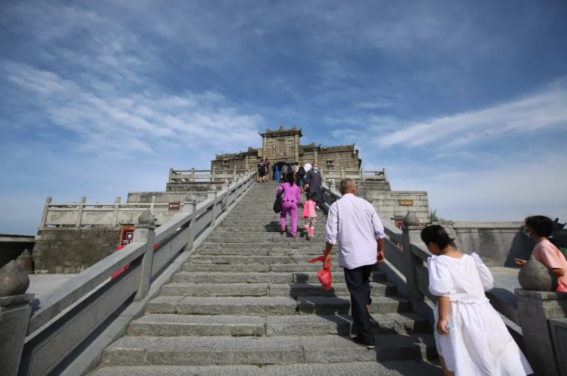 8月23日,南岳景区“重启”,游客有序登上祝融峰。通讯员 文兰 摄