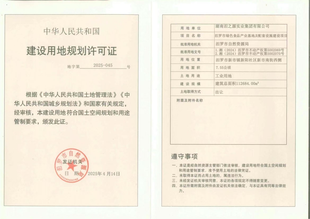 汨罗市自然资源局(湖南汨罗高新技术产业开发区管理委员会)(建设用地规划许可证 地字第2025-045号)