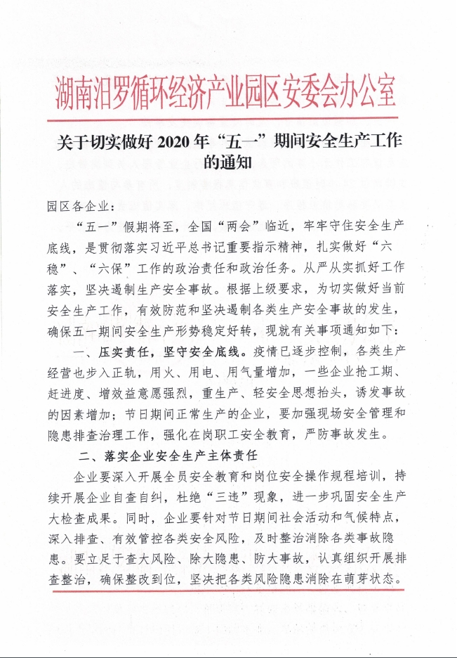 关于切实做好2020年“五一”期间安全生产工作的通知