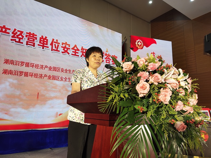 6月19日下午,湖南汨罗循环园区“安全知识抢答赛”活动举行。园区管委会纪工委书记杨惜春,以及市应急局,市消防救援大队,市
