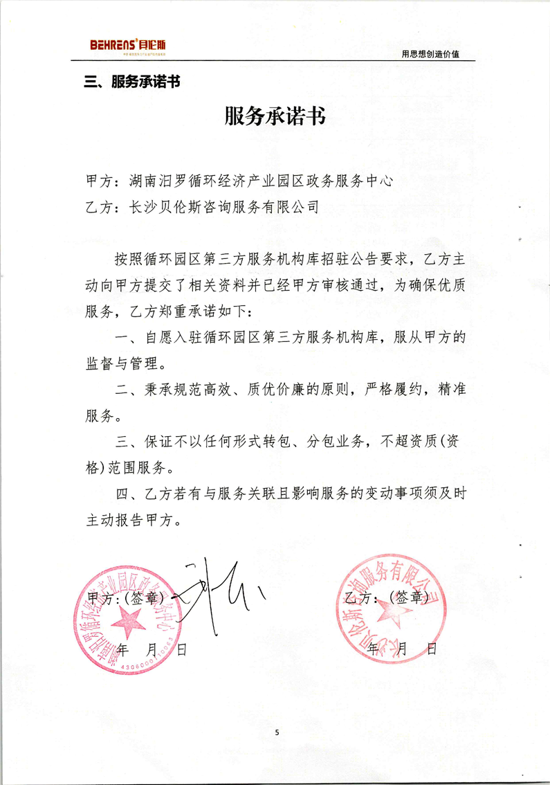 长沙贝伦斯咨询服务有限公司承诺书