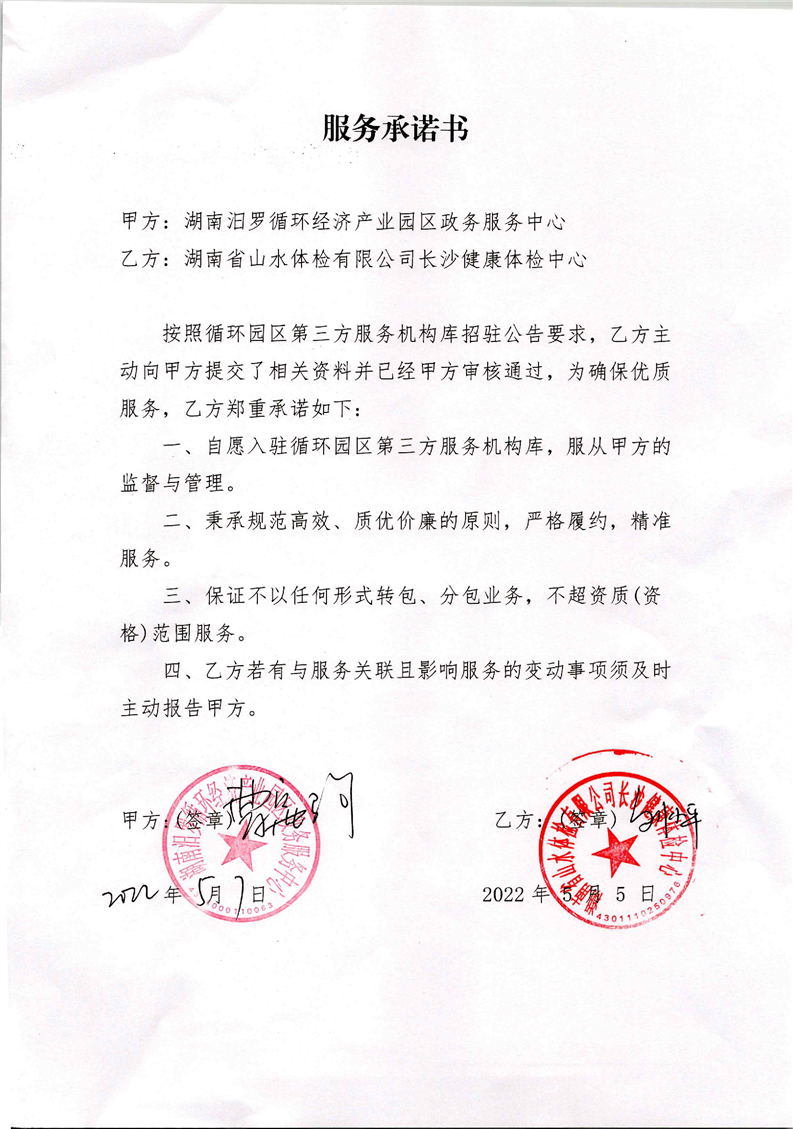湖南省山水体检有限公司长沙健康体检中心服务承诺书