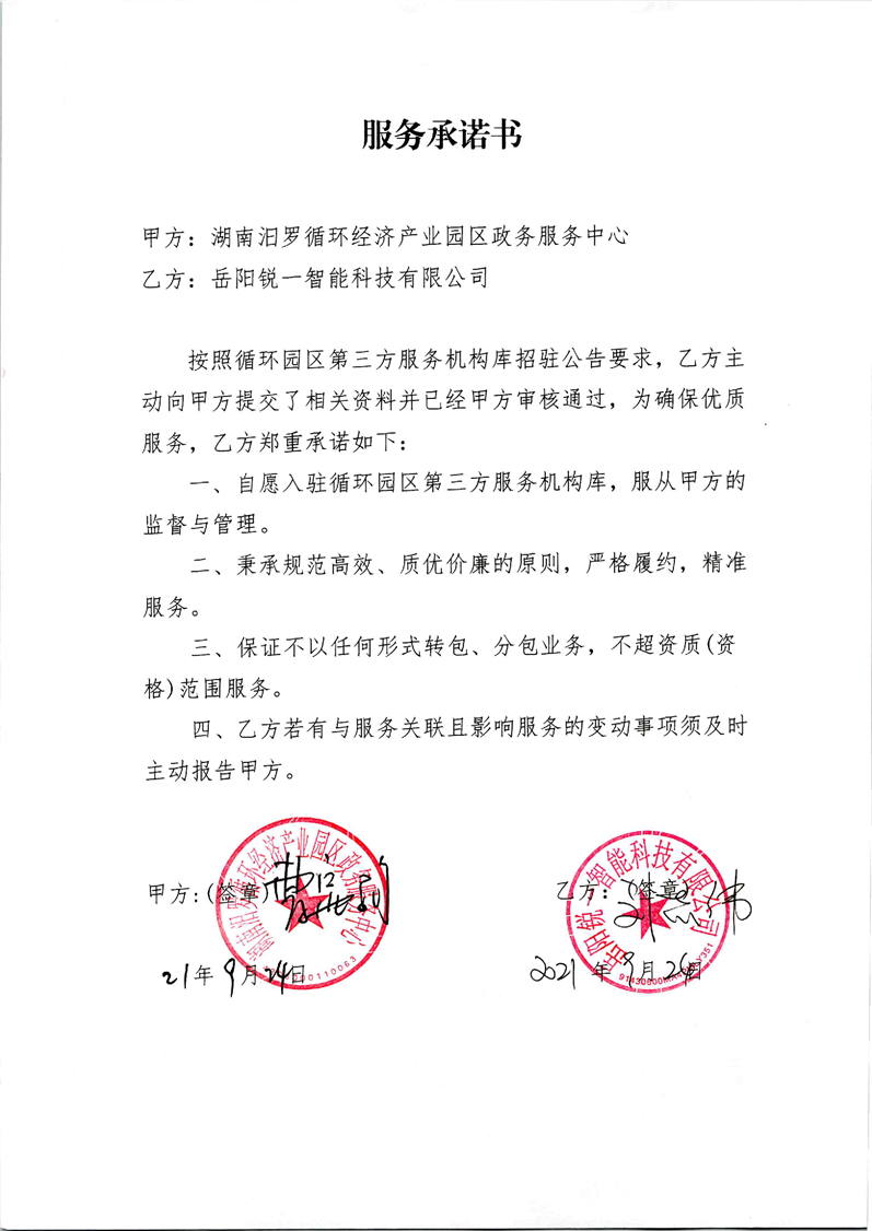 岳阳锐一智能科技有限公司服务承诺书