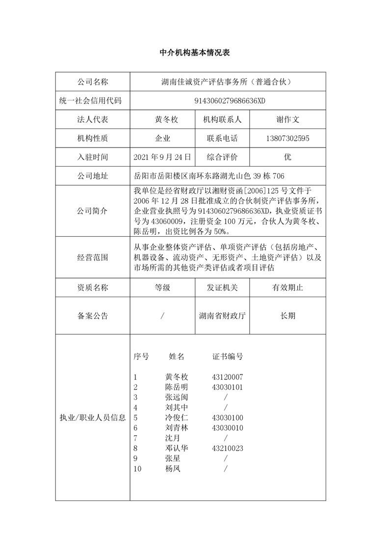 湖南佳诚资产评估事务所(普通合伙)