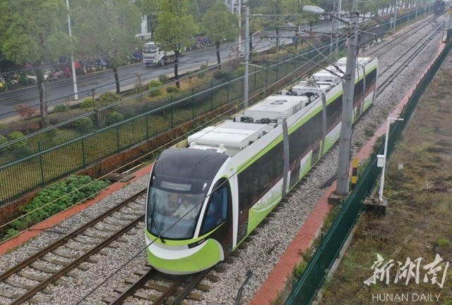 (中车株洲电力机车有限公司研制的第三代超级电容有轨电车——“电电混合五模块储能式现代有轨电车”)