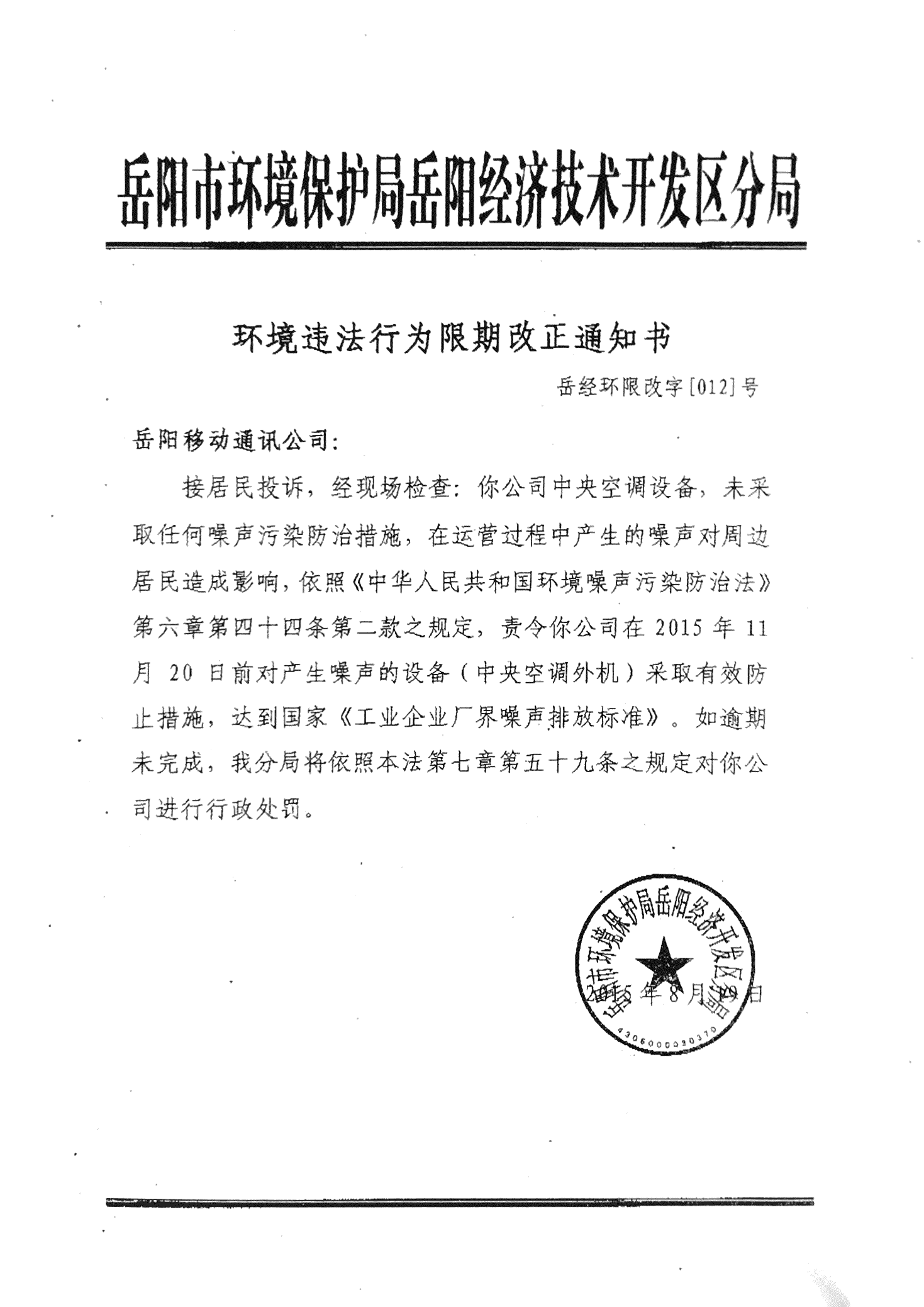 | 回复内容: | 市民朋友: 您好!您在市长信箱反映的关于移动公司空调楼顶噪声扰民问题我局已收悉。根据属地管理、逐级处访的原则,我局立即将该件转交开发区分局进行办理,开发区环保分局按照要求迅速落实,立即指派监察人员到现场调查处理,现将办理情况回复如下: 经查,英伦世家对面移动公司中央空调未采取任何噪声防治措施在运营过程中产生的噪声影响周边居民。为此,我分局环境监察大队下达文书要求该店采取隔音降噪措施,并于