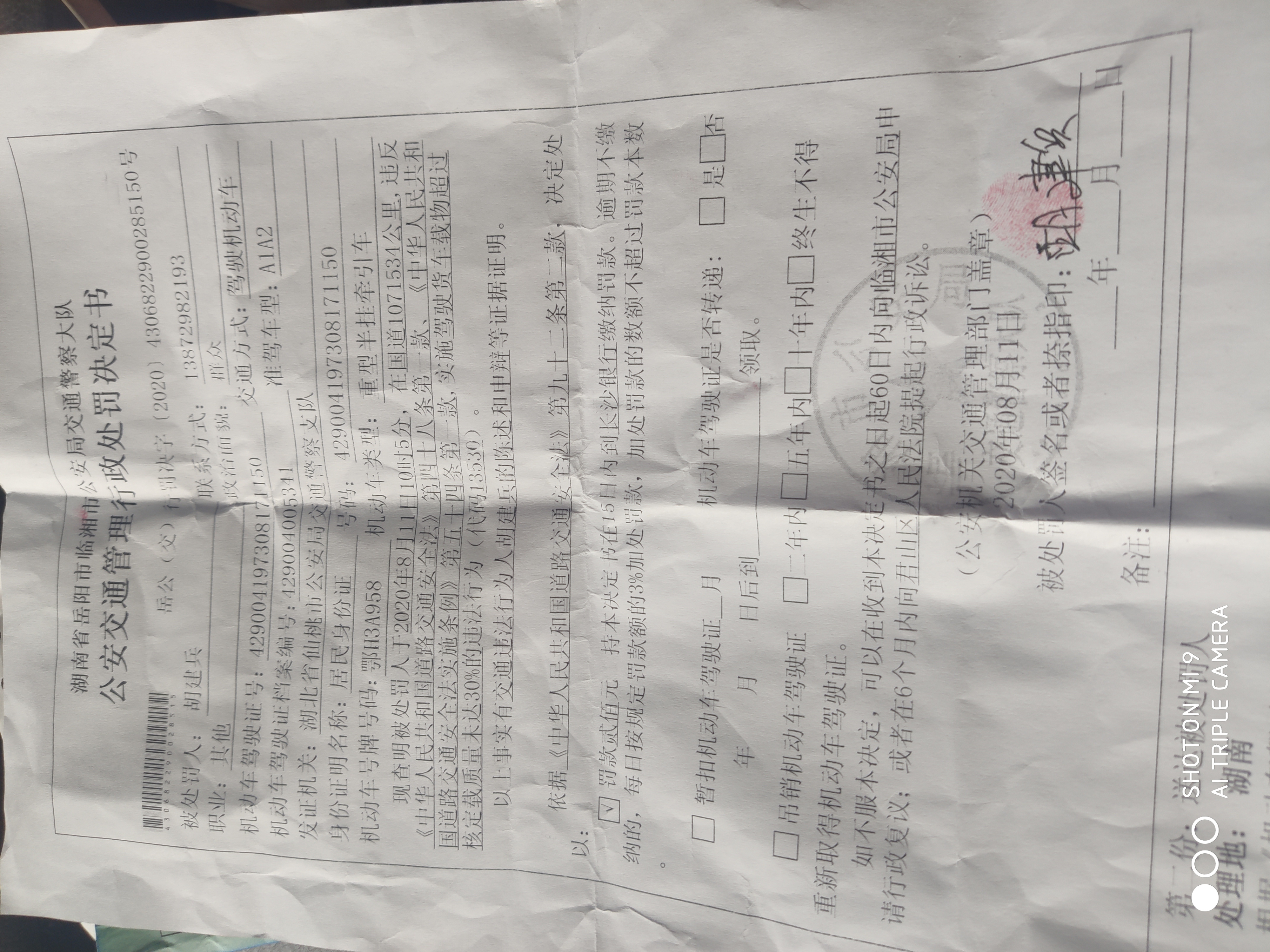 | 回复内容: | 胡建兵驾驶人: 2020年8月11日,我大队城西中队在107国道1534公里处开展交通问题顽瘴痼疾集中整治行动中,现场查获你(胡建兵,男,湖北仙桃人,驾驶证号:42900********71150)驾驶的车号为鄂H3A958重型半挂牵引车超载违法行为。经核实,该车核定载物质量为48.7吨,当天实际载物重量为49.27吨(有磅单为证),超过了核定载物总质量0.285吨,该车已涉嫌货车载物超过核定载质量未达30%违法行为。根据《中华人民共和国道路交通安全法》第48条第1款、第92条第2款的规定,公安机关依法对你作出了驾驶证记3分并处罚款200元的处罚。 特此回复。 临湘市公安局交警大队 2020年9月21日 |