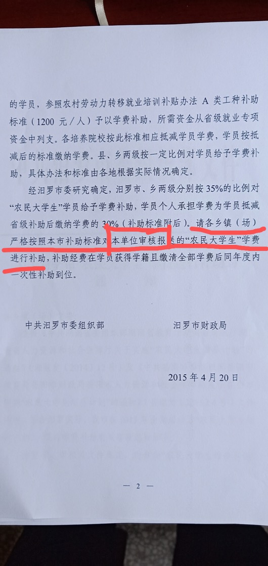 尊敬的市委领导您好: 我是汨罗镇一位普通市民,今年9月份开学时,我通过汨罗镇政府组织部报名参加了市委组织部关于培养“农民大学生”的升学计划,报名当时汨罗镇政府并未告知我要享受乡镇补贴需要是本地户口。报名结束后,我拿市委组织部报名发票去镇政府报销,却被镇政府以我户口不在当地拒绝给我报销(我是离异家庭,户口跟着父亲,但我实际生活是从小跟母亲在一起生活在汨罗镇长大家也在汨罗镇,母亲也是汨罗镇户口)。但是我查看了:汨组通〔2019〕23号 关于做好2019年度 “农民大学生培养计划”招生工作的通知 和 中共汨罗市委组织部、汨罗市财政局《关于对全市“农民大学生”学费进行补助的通知》(汨组发〔2015〕4号),两份文件都并未要求需要户口才能享受国家政策,而是明确说在报名单位报销(详见附件) 所以我想请问市委领导:1、汨罗镇政府的做法是否合规合法? 2、汨罗镇政府是依据什么政策文件和法律条文,做出拒绝给我报销的决定? 3、汨罗镇政府办事只看一张纸,而不看具体实际情况,这样的做法是否科学? 盼望市委领导能给我明确的答复 此致,敬礼 |