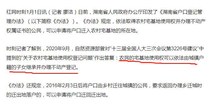 本人原籍是汨罗弼时镇唐家桥村人(现序贤村),03年大学毕业后将户口直接从学校迁往长沙工作的单位,落在单位集体户口上。现我父母双亡,根据《湖南省户口登记办法》,依法取得农村宅基地使用权并办理不动产权属证书的公民,可以申请将户口迁入农村宅基地所在地。又根据资源资源部对“十三届全国人大三次会议第3226号提到的“关于农村宅基地使用权登记问题”做出的答复:农民的宅基地使用权可以依法由城镇户籍的子女继承并办理不动产登记 ”文件精神,请问我本人现在是否可以根据以上文件,办理户口签回原籍手续。 |