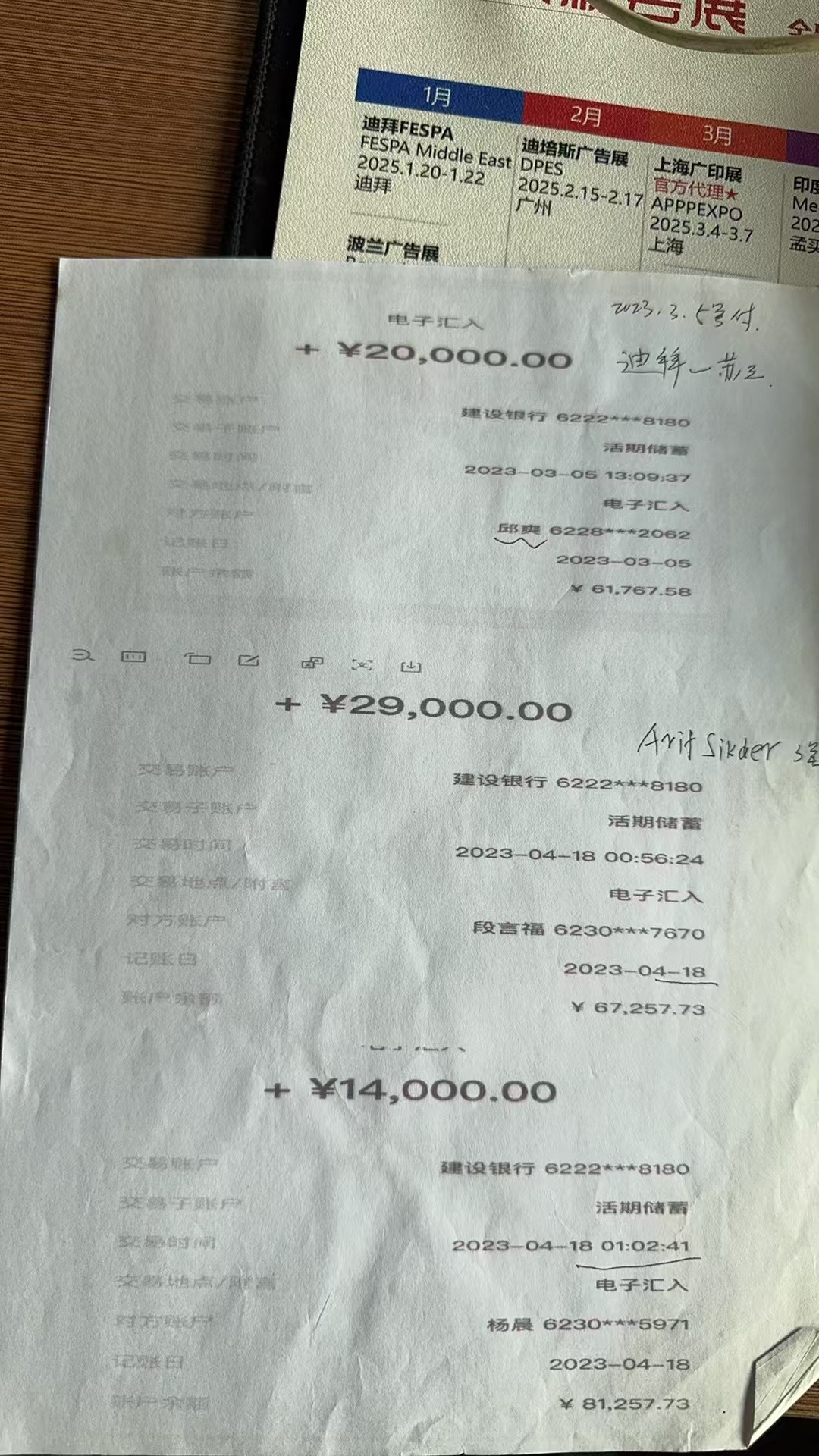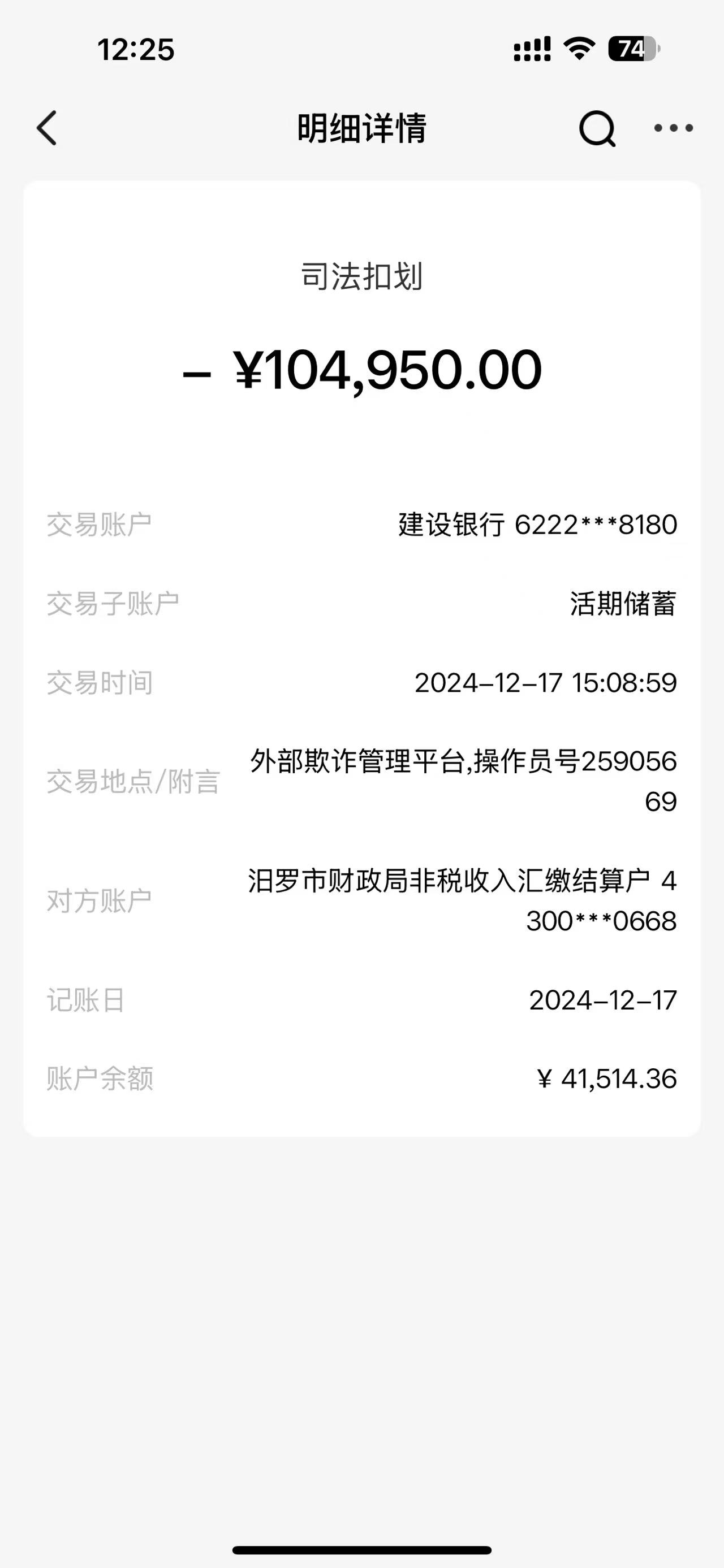 本人是湖南邵阳隆回人士,在浙江义乌国际商贸城开店从事国际贸贸易热转印耗材的生意,国外客户通过支付货款的方式,客户通过迪拜的换汇中介公司支付我公司的货款23年4月-6月份货款共计104950元,中间我也有电话打过来给汨罗的公安局,后面也不了知,我们在义乌生意都是正常交易,我上传有客户的聊天记录,和有关信息,现在把我的建行冻结,钱也强行划扣,请问政府领导怎么样才能追回我们老百姓的损失。 附件1:客户付款记录.jpg 附件2:客户付款记录1.jpg 附件3:客户付款记录2.jpg 附件4:银行卡.jpg 附件5:银行卡汇款记录.jpg 附件6:银行卡汇款记录1.jpg |