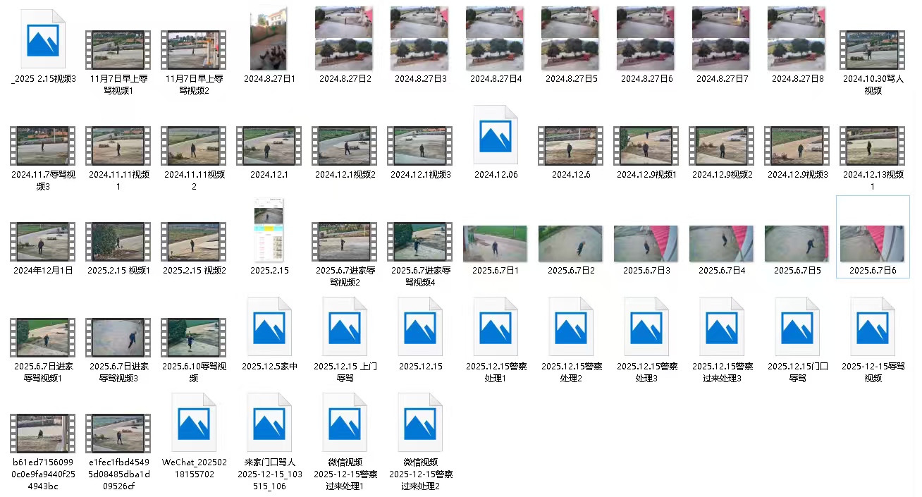 2. 这次,我们不再相信调解、也不接受调解的结果(因为对这种恶霸无赖根本就没用),对方的行为构成“寻衅滋事”,或公然侮辱他人,并长期干扰我们家人的正常生活,涉嫌违反治安管理处理法。我手上收集了从2024年7月以来大量日常吴大平吴辱骂人的视频证据(被迫在家门口安装了摄像头)。以上本人的反映,请予以核实,另外,关于吴大平的所作所为,请对其进行问询、调查,并强烈恳请走访(暗访)乡邻核实情况,依法处理!