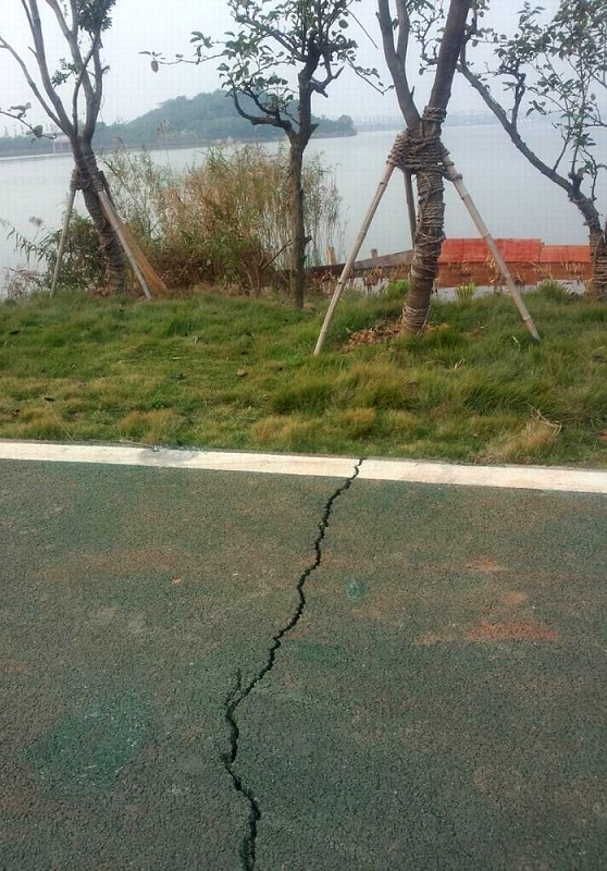 湖滨彩色沥青(九龟湾)段绿化景观工程,是环南湖交通三圈的试验段。该项目于今年8月基本完工,现正着手工程扫尾、补修、整改,尚未正式交验。对您所提出局部裂纹的现象,我项目建设指挥部之前也发现并高度重视,增多次邀请相关专家、设计、施工单位现场勘查,查找原因。该沥青路面基础采用钢筋砼,沥青砼面层出现裂纹属于正常收缩裂纹,我项目部已经责令施工单位限期整改,施工单位正在积极准备材料,将会在近期整改完善,直至达到合格,我方方可办理竣工验收。