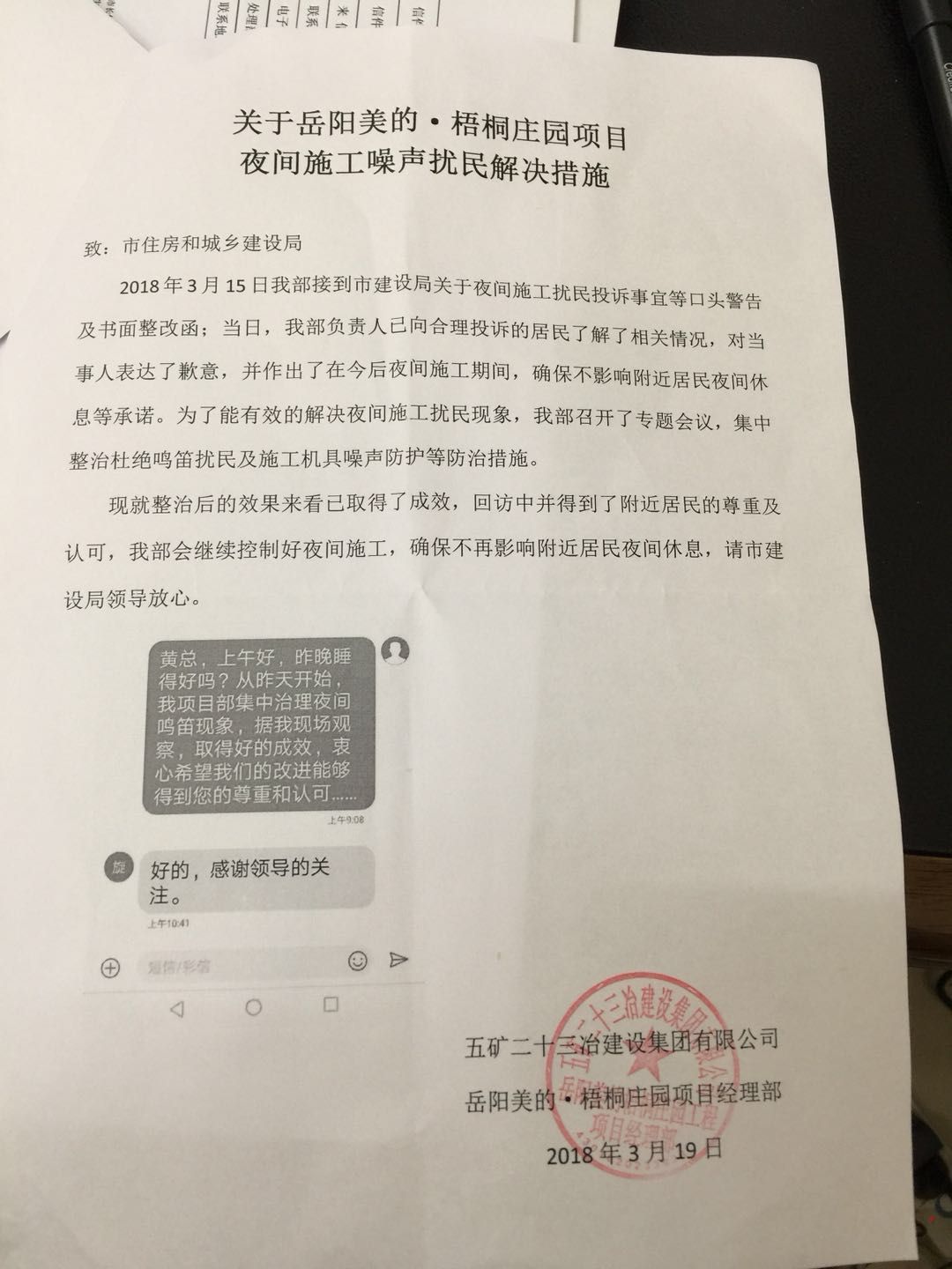 美的梧桐庄园之前投诉过深夜施工,打混泥土问题,政府说是重点工程,让附近居民敬请谅解,可以谅解。但能不能请有关部门督促下,混泥土车晚上不要叫喇叭,凌晨一两点,喇叭声不断,一声不行接着第二声,然后按着喇叭不动,响他妈个七八秒。安静的夜里,这么刺耳的声音,很让人烦躁。还请有关部门提醒下施工单位。