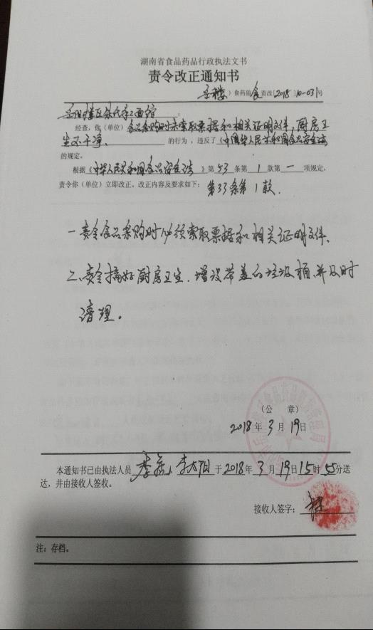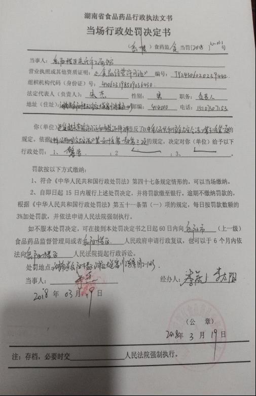 3.我们现场对该店下达了责令整改通知书和当场行政处罚书(警告处分)。